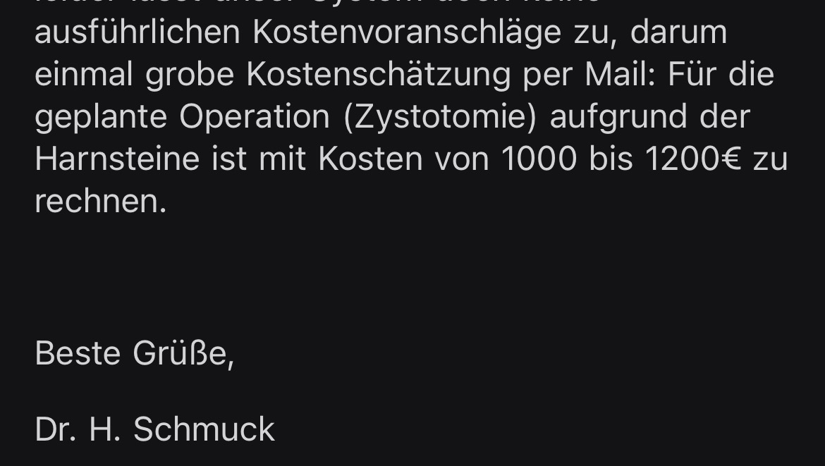 The cost of the surgery plus (estimated by the vet between 1000€ and 1200€)