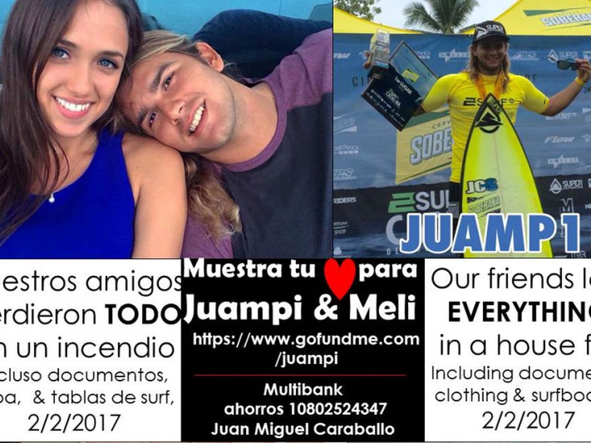 We've watched Juampi grow up surfing on our little Caribbean island. This year he proudly moved ALL of his belongings out of his parents' house to embark on his 'adult life' as a competitive surfer living alone with his girlfriend Ana Melissa. Their lives were forever changed this week when the house they inhabited burned to the ground leaving them with nothing but their health and the clothes on their backs. Juampi will have to endure the arduous task of obtaining a new Venezuelan passport in order to travel again (which he needs to for surf competitions). Last time it took him 10 months. Please consider donating whatever you are comfortable with in order to assist this young couple in pursuing their dreams.