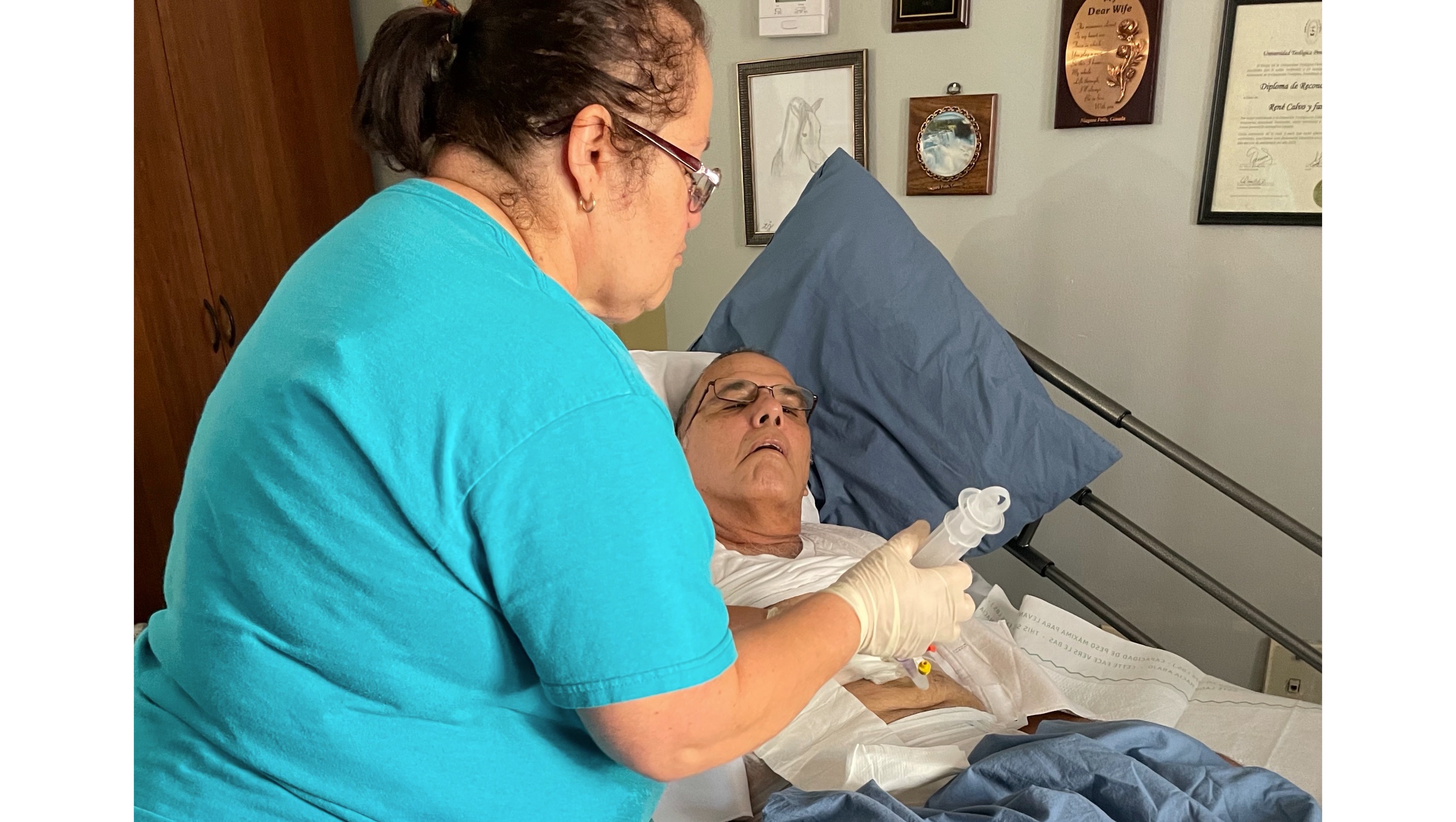 My name is Loyda Cordovi, My husband Juan Carlos Cordovi, on April 16, 2021 underwent surgery for a mass in his cerebellum and had retention of brain fluid, approximately 72 hours after surgery he had a hemorrhage in the brain, which affected his ability to speak, swallow, balance and coordination of his body and movements.