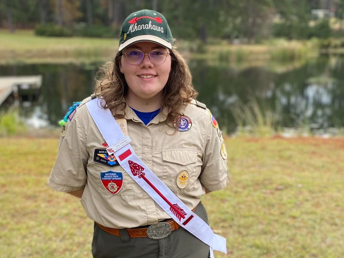 Hello! My name is Julia Schwope. I have been in Troop 444, Richardson, Texas since Fall 2020 and have served in many leadership roles including Senior Patrol Leader, QuarterMaster, and Order of the Arrow Representative. I'm also President of Venture Crew 1978, Vice Chief of Inductions for Arapaho Chapter of Order of the Arrow - Boy Scouts of America and Chaplains Aide for Mikanakawa Lodge. Scouts has given me so many mentors and opportunities including staffing ILST, NYLT, NAYLE and high adventure for which I'm forever grateful-- it has shaped my character and I am striving to be one of the first 10,000 women worldwide to become an Eagle.