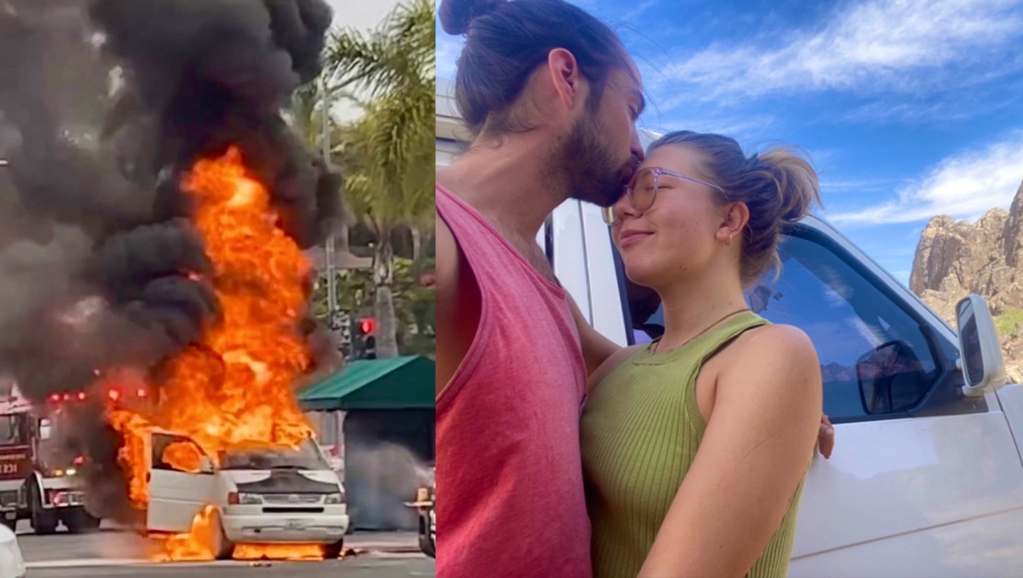 Isabella was in the passenger seat when it happened and immediately jumped out of the van when she saw the flames with only her phone in her hand and the clothes she was wearing: leaving behind and losing her shoes, wallet, passport, hundreds of dollars in cash, her laptop, airpods, and other electronics, hula hoop, clothes, camera, water bottle, travel backpack, and many more essientials.