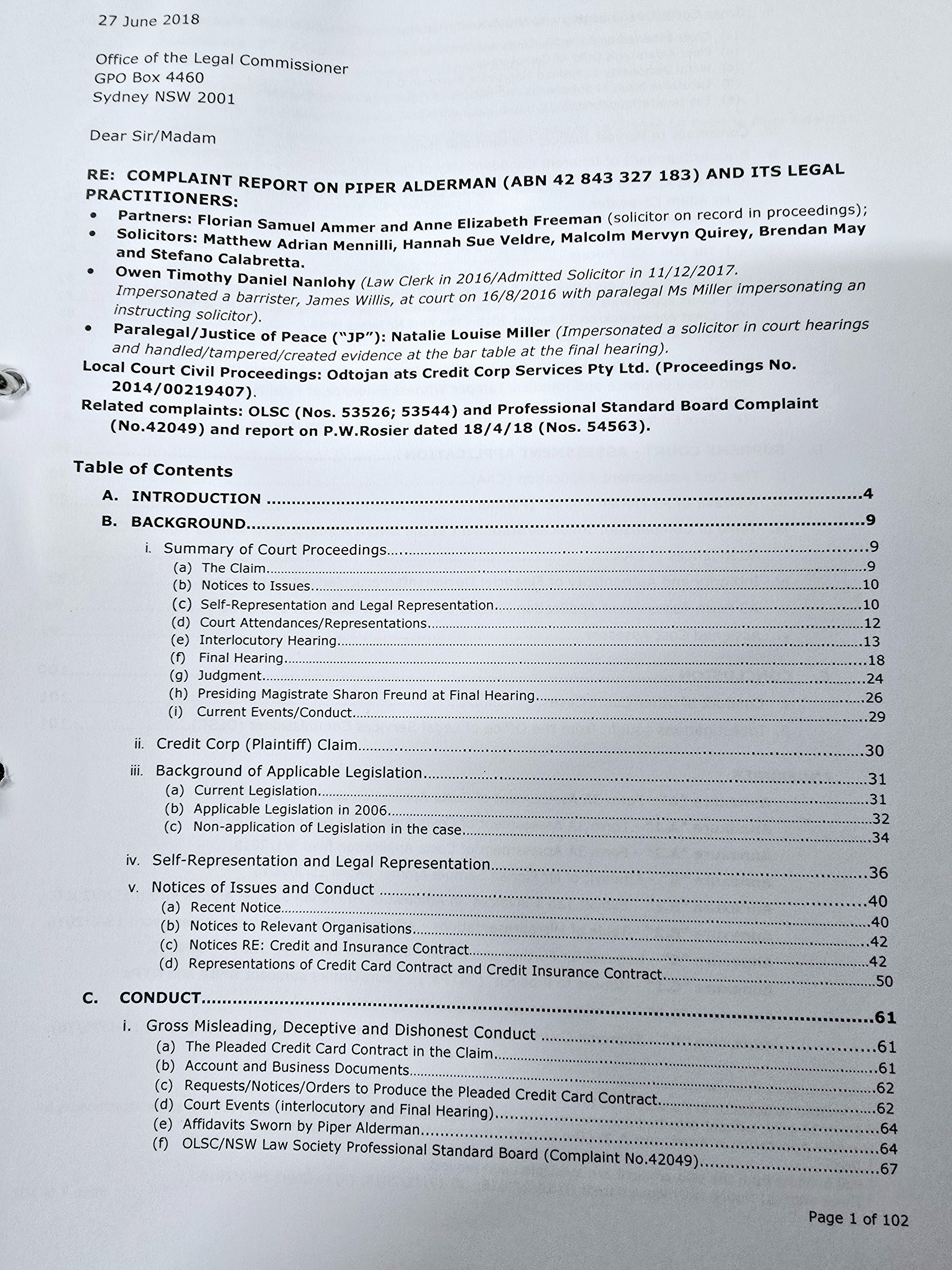 The LSNSW/OLSC have targeted Ms Odtojan and Mr Bryl where Ms Odtojan (a St George Bank consumer and a client of Mr Ford, Mr Glynn and Mr Condon SC) was not in capacity of as a lawyer and was exercising her right to defend a claim and accessing the courts to bring Mr Ford, Mr Glynn and Mr Condon SC to justice.