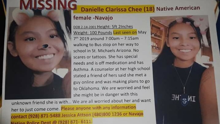 My sister went missing one morning from St. Michaels AZ on May 7th 2019. No one notice she was gone until she didn't come home from school that evening. The school and police were notified but there was nothing they could do but make a report. As days go by we learned that Danielle was picked up by a man name Gary A. Kaiffee and his friend.