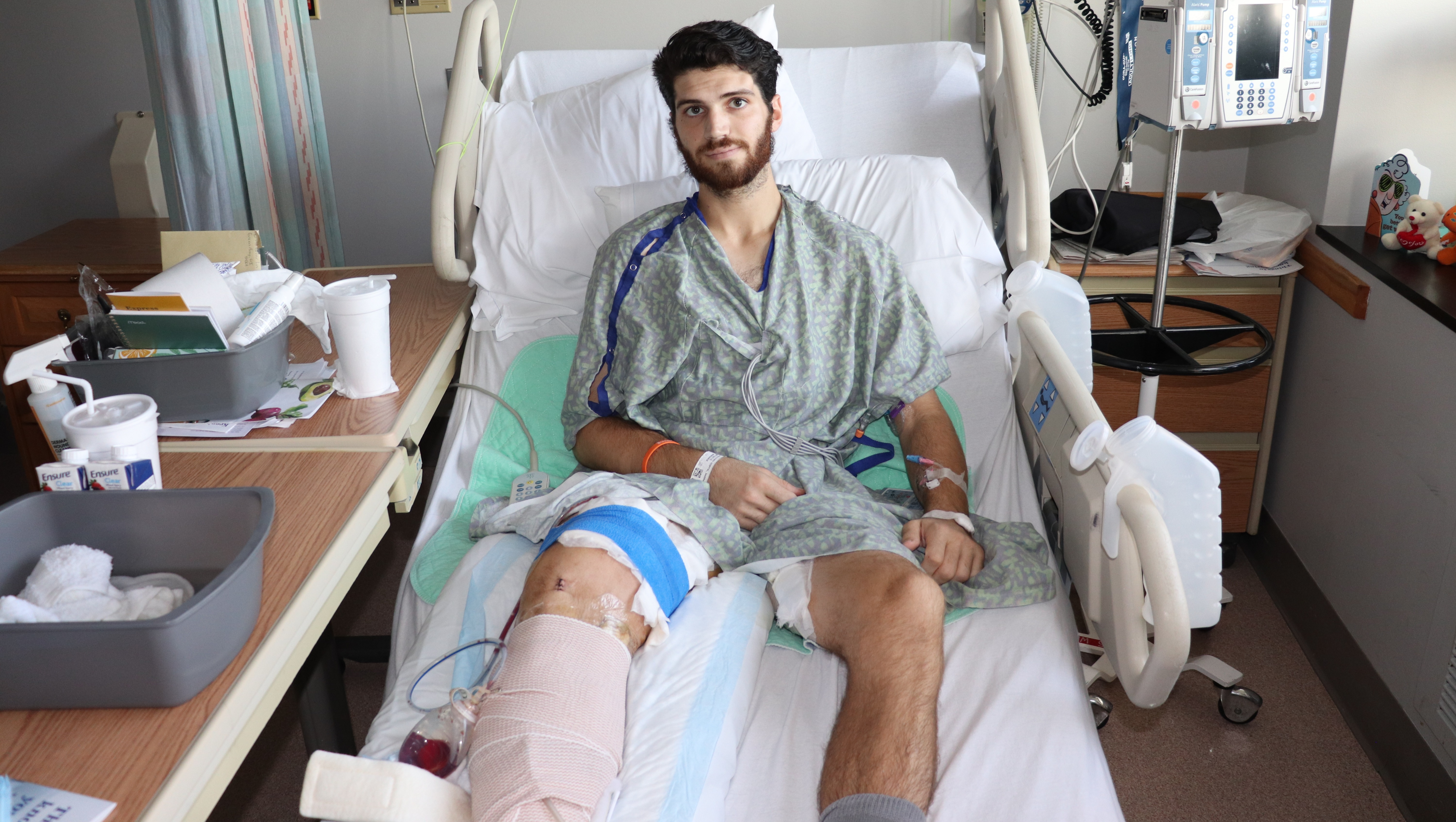 We are thankful that Justin’s life was spared and appreciate the overwhelming support and prayers we have received in the last week. After a little over a week in the hospital (ICU and Surgical care) Justin will come home tomorrow on August 25th, and begin in-home therapy and care. However, he will be unable to work for the foreseeable future, and his senior year of college has been put on hold as he recovers.
