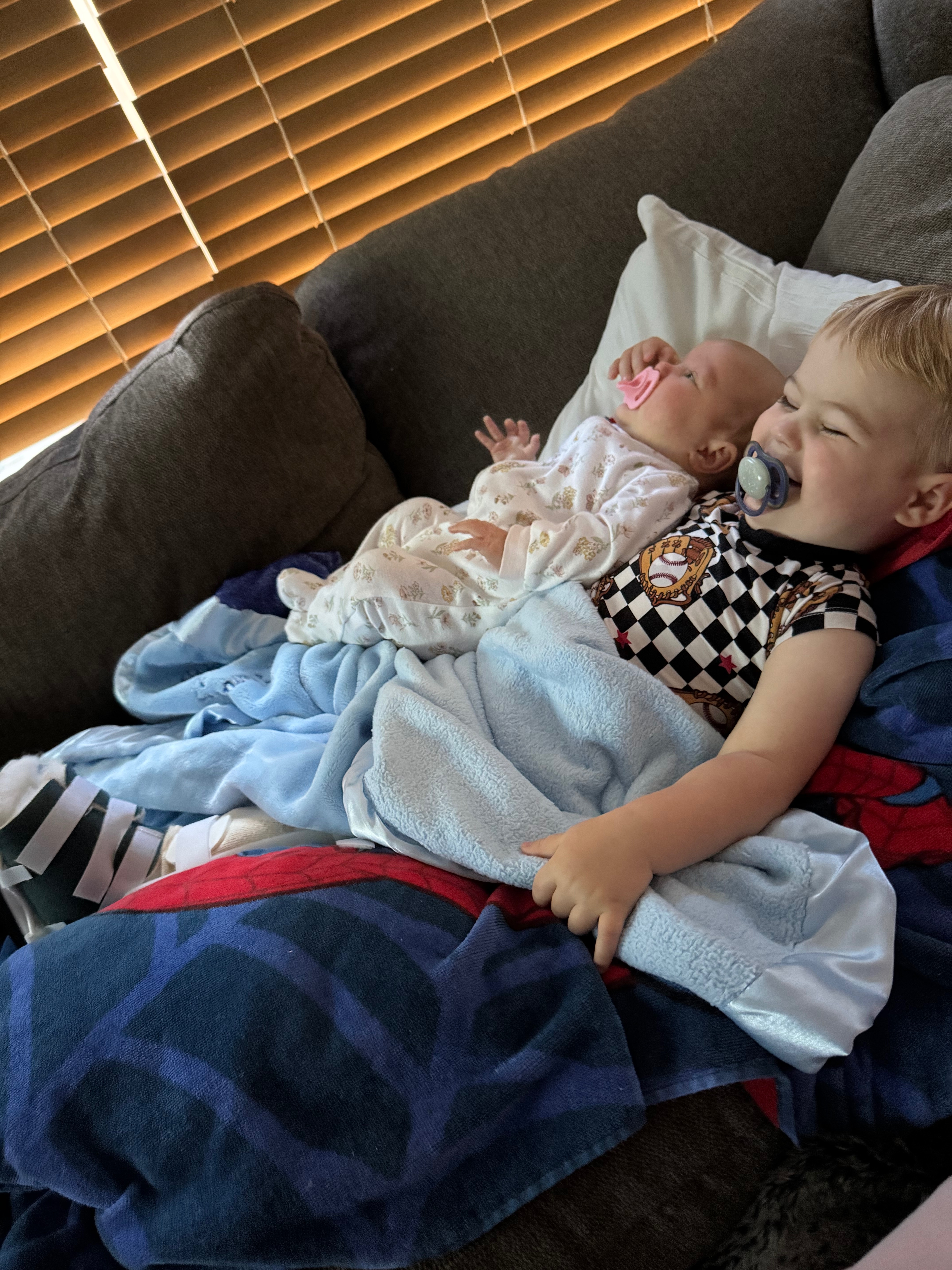 The first thing our sweet boy asked when getting home is, "Where is baby?". He missed his new baby sister, Lainey ♡. She too was missing Weston, Mommy & Daddy. After a week of little to no sleep, a lot of pain meds and pillow propping, Weston returned to the doctor for x-rays to see how his leg was healing. Three doctors entered the room to break the bad news. Weston would need surgery that same day to place a plate and screws on his femur to keep the bone in line ... the uncomfortable spica brace was not working. The bones had shifted further apart. Our poor little guy cried and screamed, "home ... home ... home" over and over as each nurse or doctor entered the room. After the initial shock of this news ... anxiety ... and tears, Mommy, Daddy & Weston prepared for surgery and spent another night in the hospital.