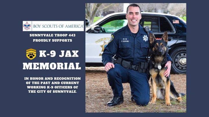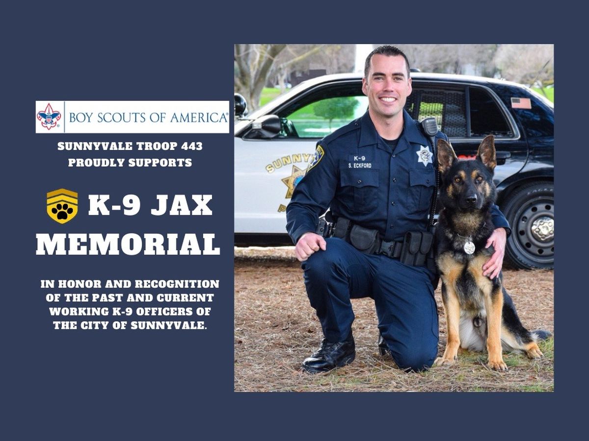 As my Eagle Scout Service Project, I am looking to gain your support to build a memorial dedicated to Jax and to honor the past and current working K9s of the City of Sunnyvale. A permanent memorial will not only help us pay tribute to the selfless courage, and heroism of these loyal K9 officers, but will also help us spread the message of non violence in our communities. I appreciate all that you can do to assist me in funding this memorial. I am available at any time to answer any questions you may have.
