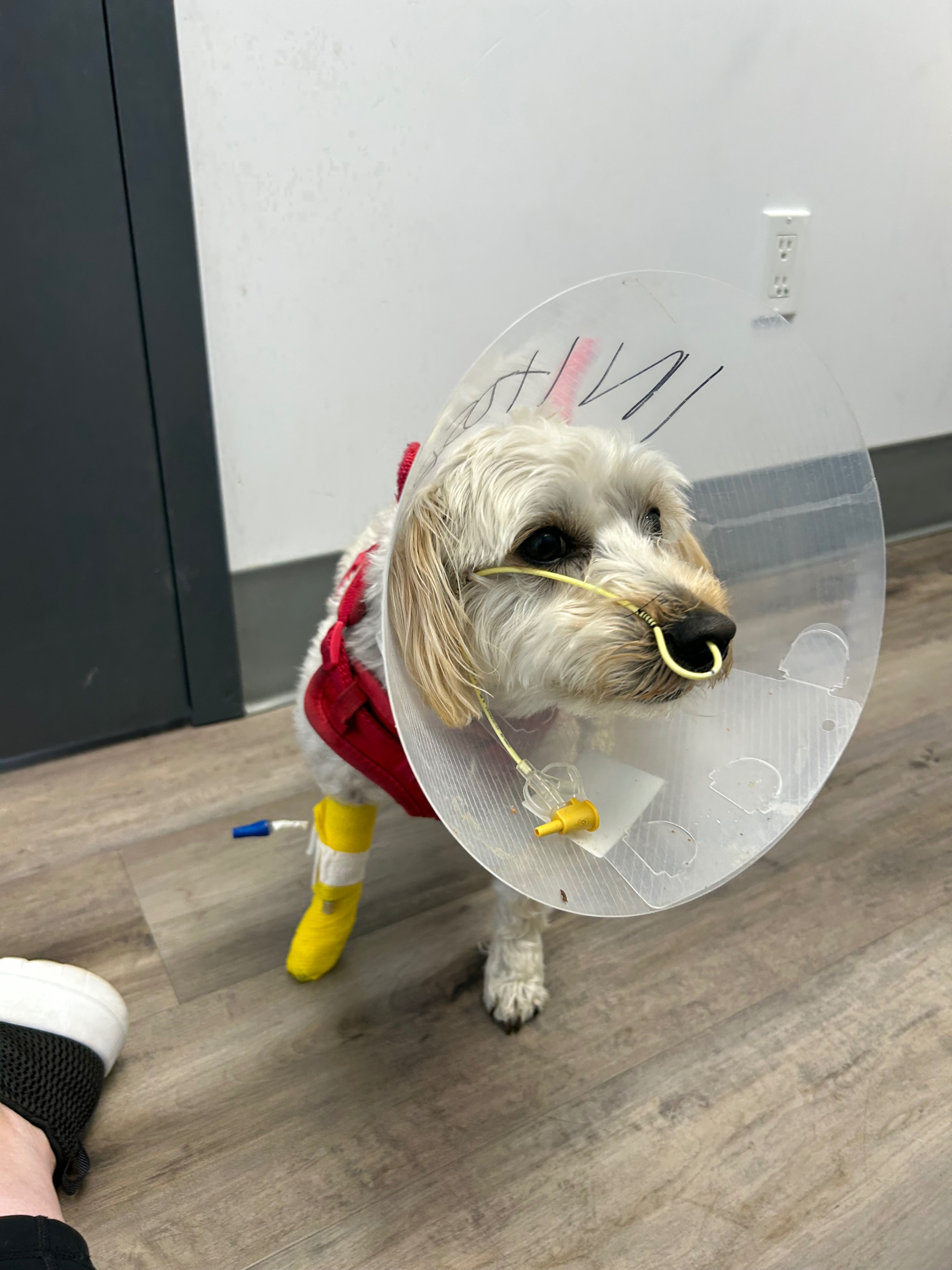 I had heard stories before about veterinary bills, but obviously never thought we would be in the same situation. Kai has been in hospital since Wednesday with pancreatitis and a severe Gastro inflammation. She had liquid in her stomach that she was trying to regurgitate that was putting her at risk of aspiration. Now with a Gastronasal tube and feeding tube in she is stabilized, but requires continued intensive supportive care. After supportive care in hospital for four days, x-rays, ultrasound, bloodwork, feeding tube and Gastro, nasal tube, IV fluids, and IV medication. The ongoing costs have become overwhelming…. Never expected a bill over 10k…..