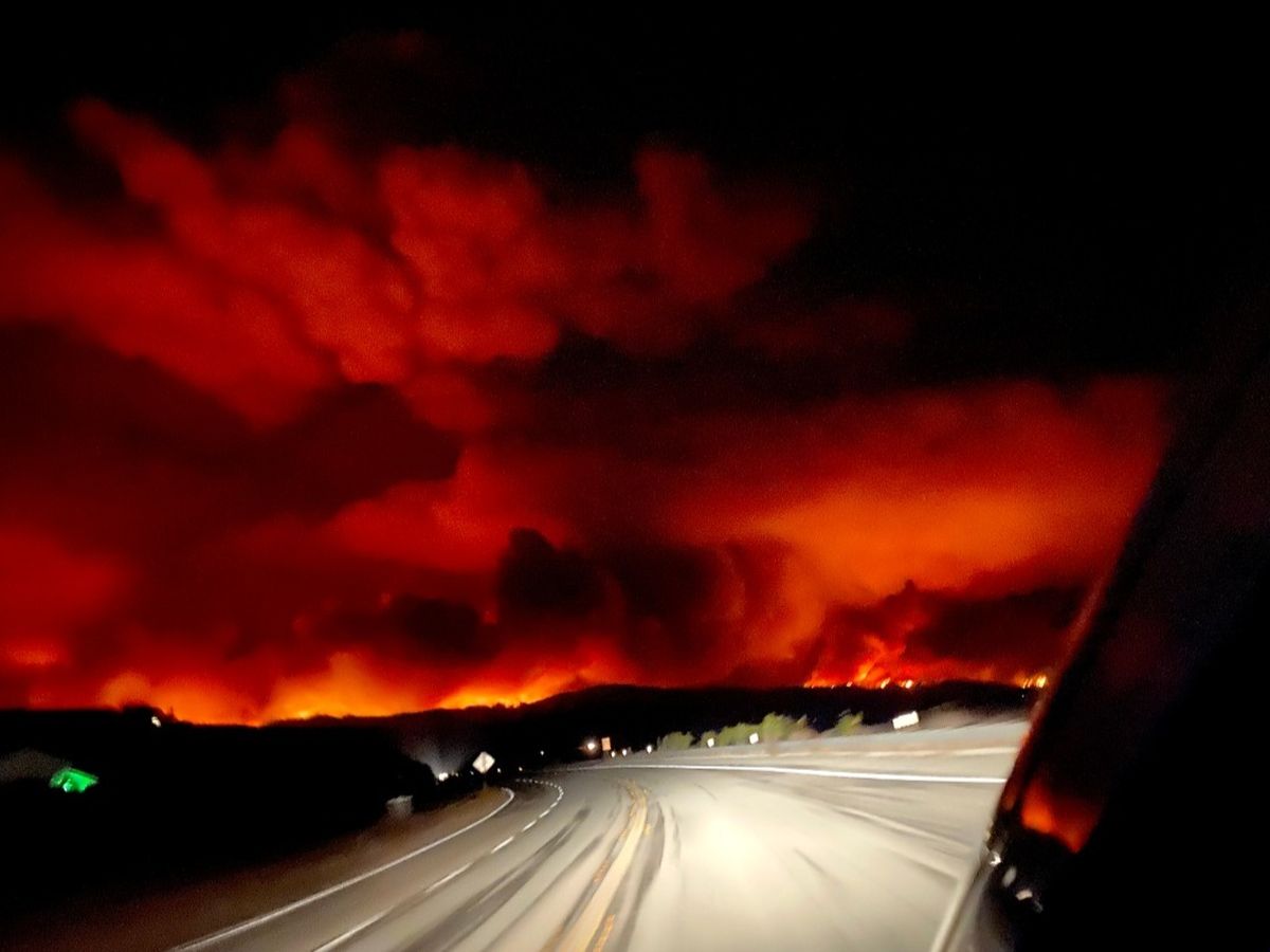I parked with the other residents already out in a small parking lot that led to the beach. I turned to look at the canyon and the whole canyon, four miles in, was a wall of flames from left to right. Propane tanks were blowing up along the ridge. My cabin was built into that ridge. On one side you could put your hand out the window and touch the mountain. The front side was the deck and I was two stories into the canopy.