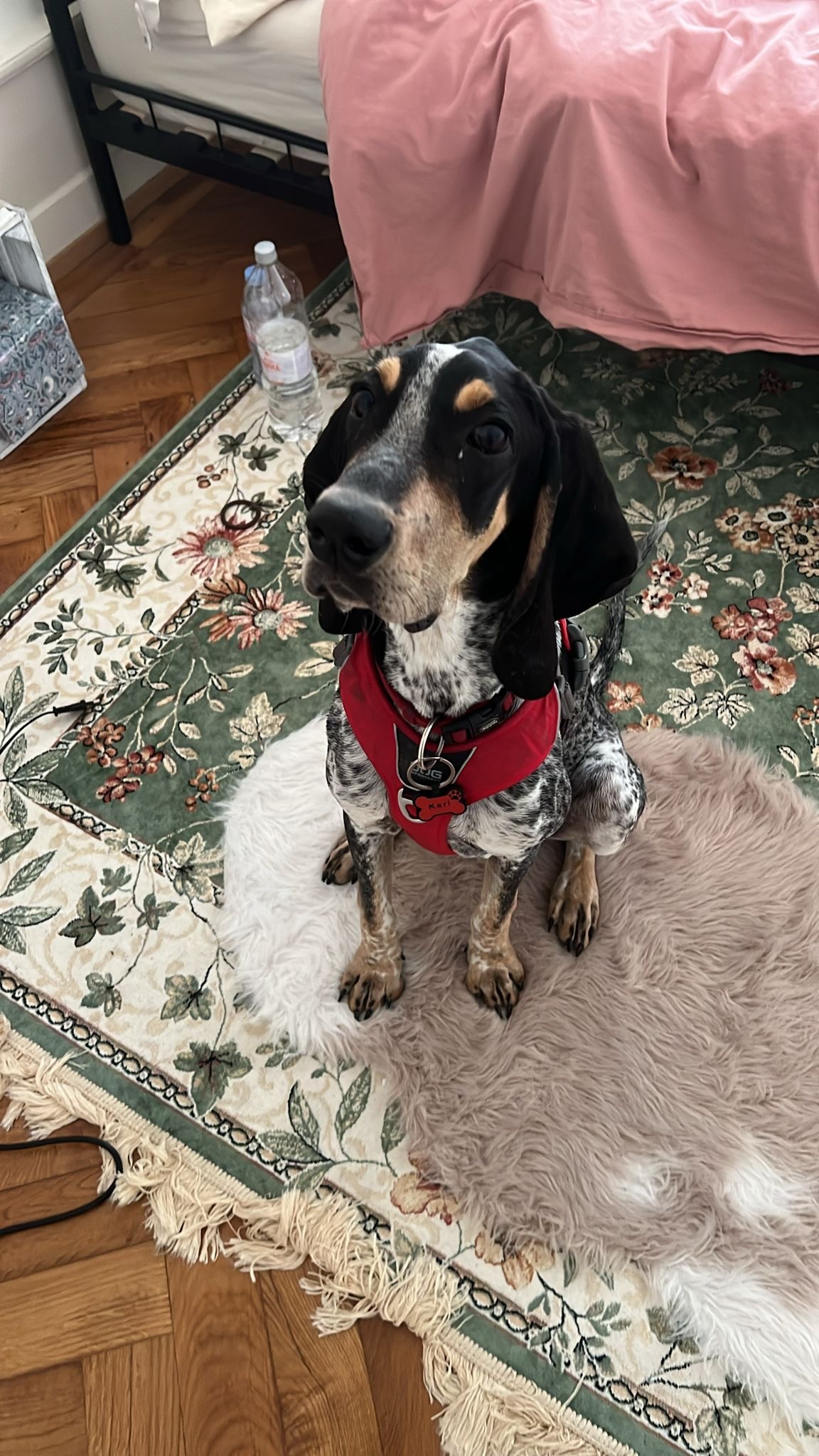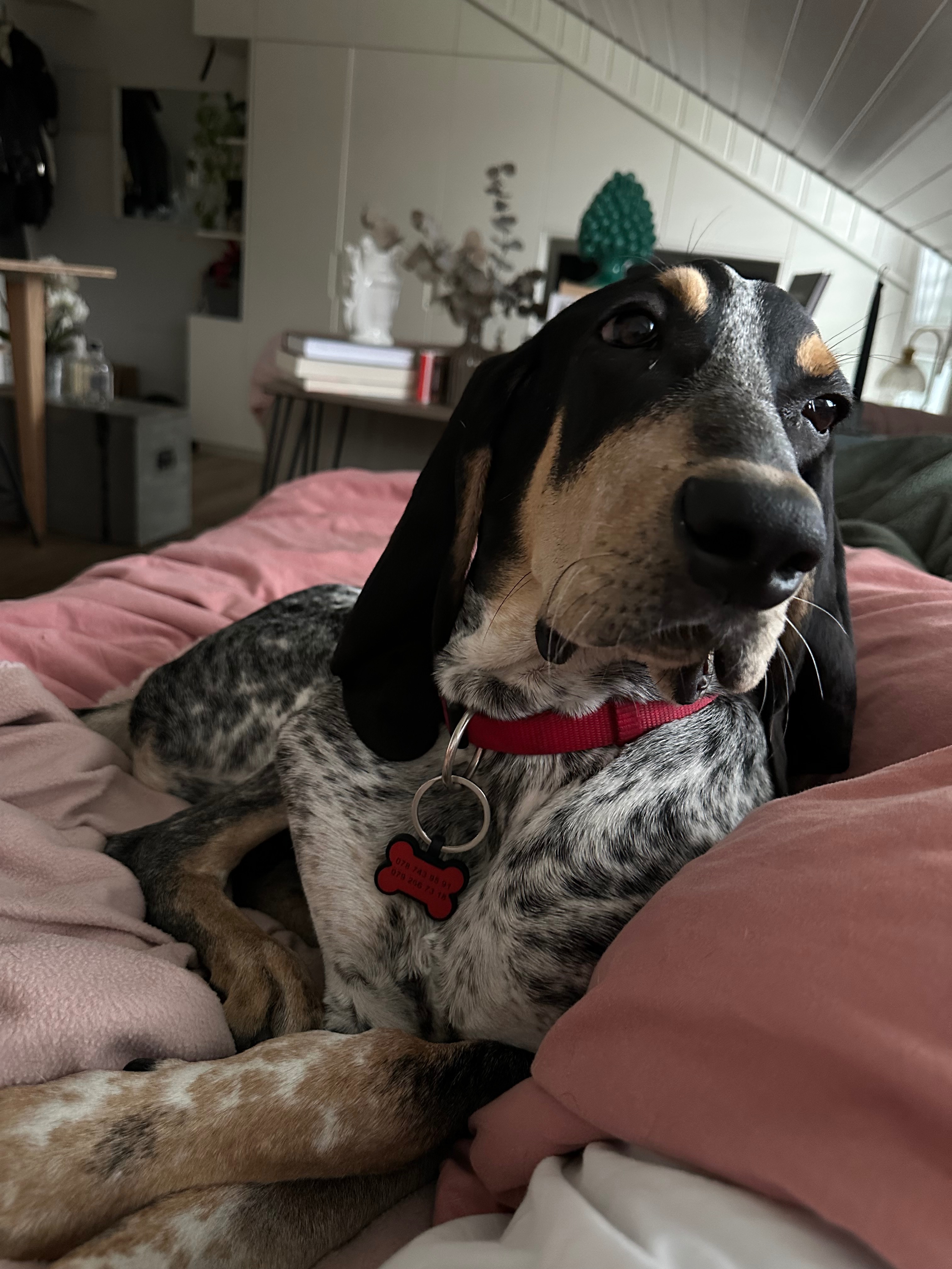 Je suis un Grand Bleu de Gascogne mais d’après mon humaine je serais plutôt un Grand Couillon de Gascogne (je fais le fou à la maison…). Grand, beau, têtu, avec des oreilles aérodynamiques et un flair à détecter un cervelas dans un sac à dos à 200 mètres. Un vrai modèle de catalogue sauf que j’ai un petit souci : le coût de ma santé représente à lui seul le PIB d’Oron-la-Ville…