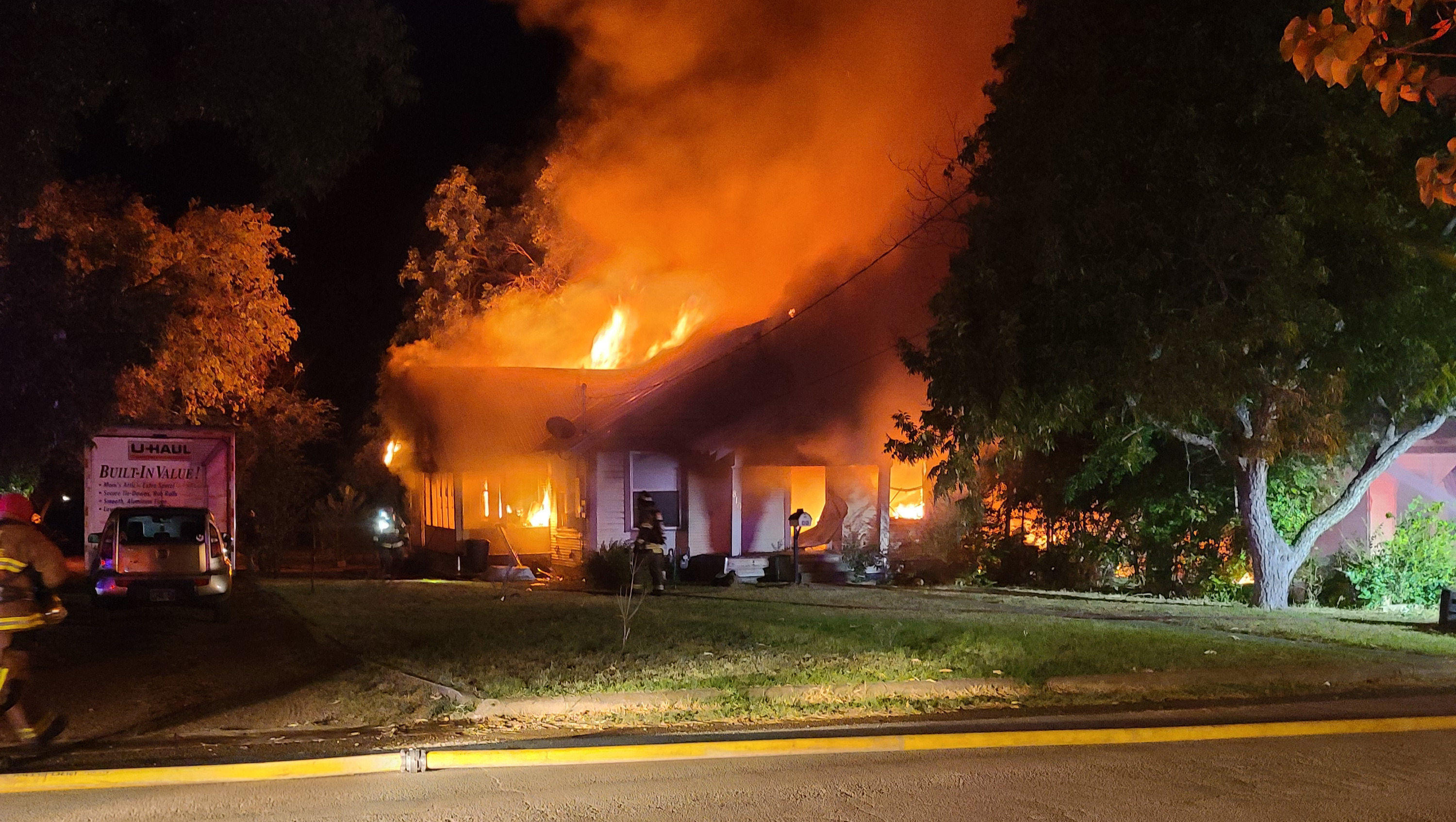 Around 1am, Kc had gone to bed and Rob was setting up his bed frame for his first night of rest in his new home. At that time he heard loud noises that seemed to be coming from their neighbor's house. He peeked his head into the living room and saw fire outside of the window. He woke his sister, telling her that he thought the neighbor's house was on fire, before running outside and seeing the neighbor's entire shed and vehicle parked right next to Kc's house fully engulfed in flames. Rob began pounding on the neighbor's door, and when he looked back he realized the fire had already spread to his and Kc's roof.