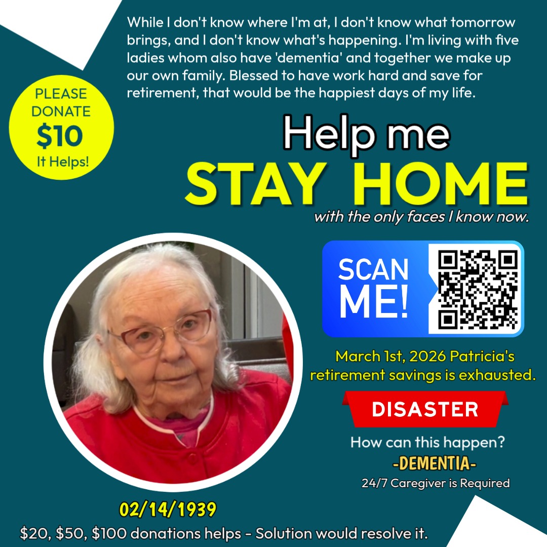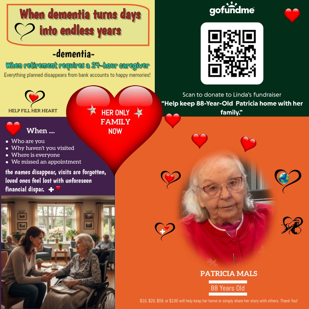 Hi, my name is Linda B. I am a caregiver, and I am writing this with a heavy heart and tears in my eyes. I am trying to raise funds for Patricia Mals, an 88-year-old woman with dementia who is facing something no elderly person should ever have to face — losing her home, her care, and her safety in just three months.