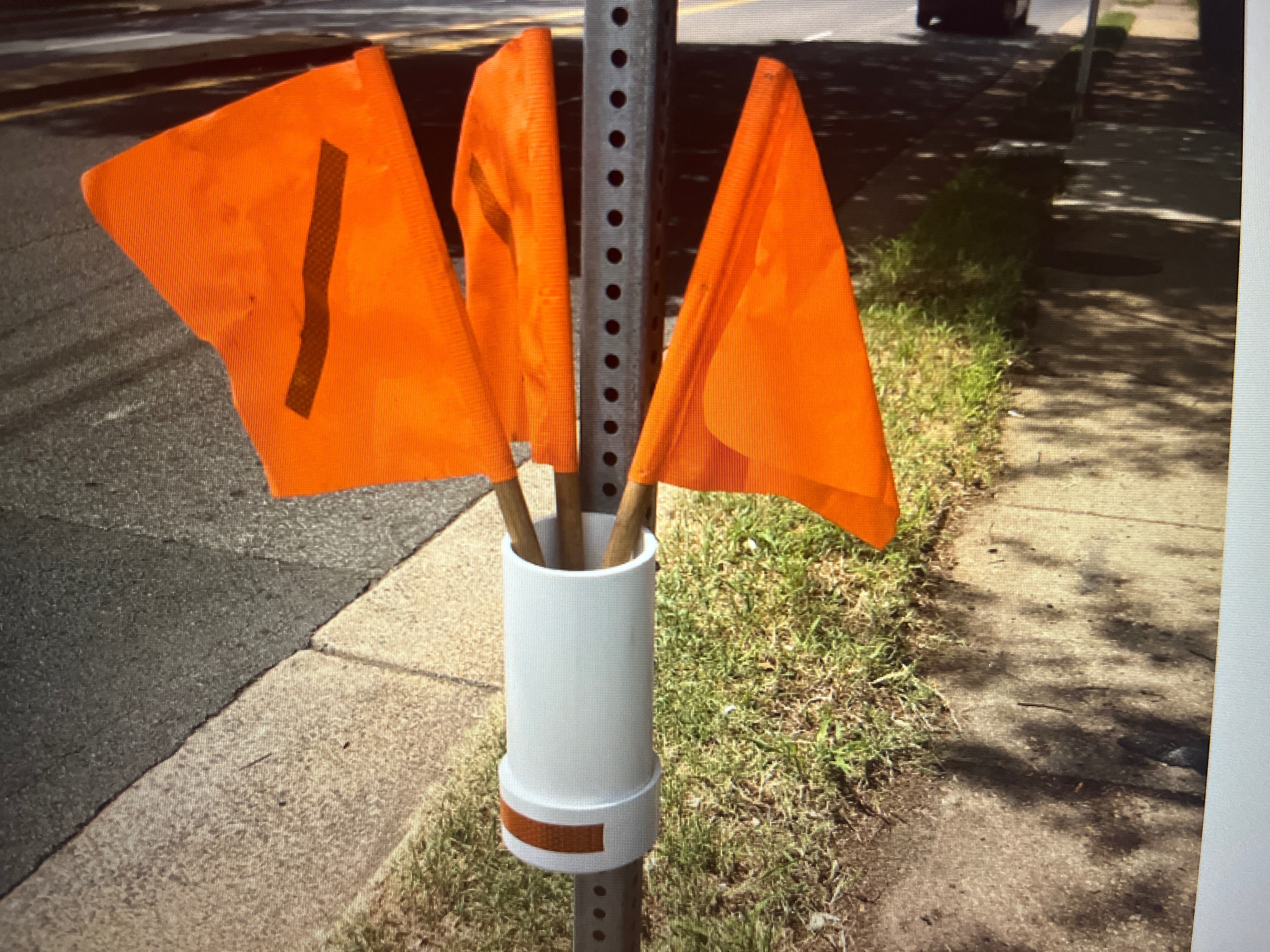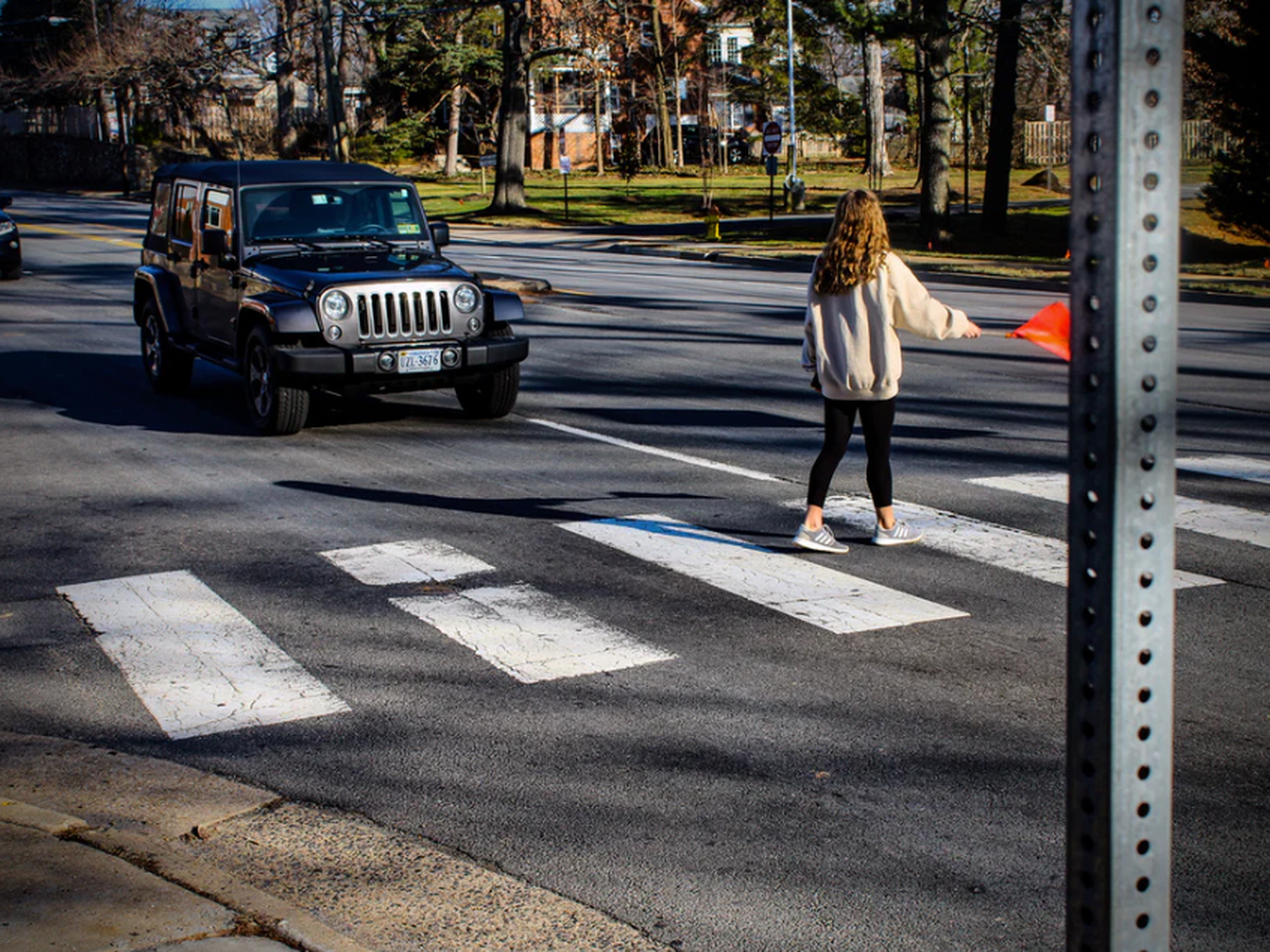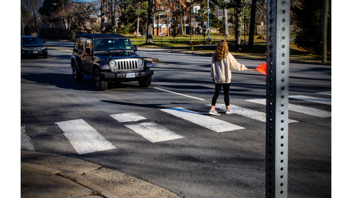 Crosswalk flags help keep pedestrians visible when crossing.