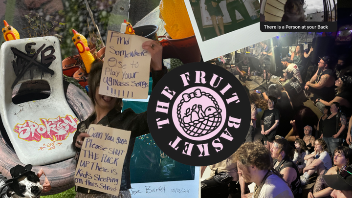 We’ve been selling buttons, working our asses off, and had a repair donation jar out at shows. Hopefully, we can pull a benefit show together soon. We already got $500 towards keeping the Fruit Basket a little more structurally sound! However… that’s a very small fraction of what we need. These times are ✨real fucking difficult✨ for everyone, but if ya wanna throw $5 our way, that’ll help keep this whole shitshow going! Thanks for supporting us all this way. Thanks for supporting each other, and continuing to come together for music, art, community, and good times despite the horrible political climate we’re all trying to fight through!
