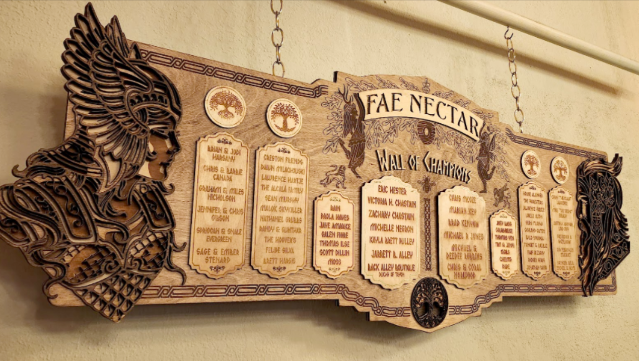 As part of this campaign, we will be honoring those who help carry Fae Nectar across this bridge in ways that feel true to our world and our gratitude. Supporters at different levels will be recognized with acknowledgements of varying permanence and prominence: names inscribed in new books of record, names set upon the walls of the Great Hall, and names remembered upon benches, banners, and gathering places throughout the grounds. These marks are not rewards so much as remembrance: a way to ensure that those who stood with us in this hour are woven into Fae Nectar’s story for years to come.