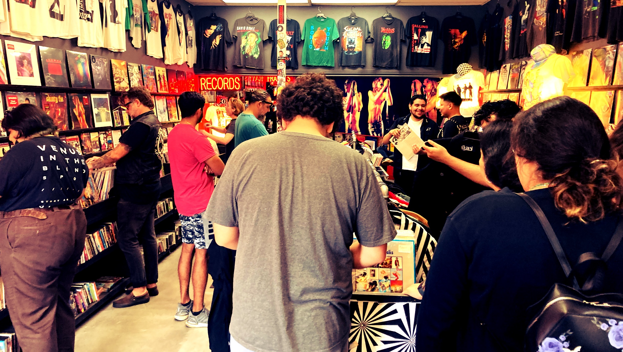 We are Sick City Records in Echo Park. We support new music and local artists to have a place to perform and sell their releases. What makes us unique is that we have a barbershop, which creates a lot of fun conversations about music and art between the barber and the client over the years.