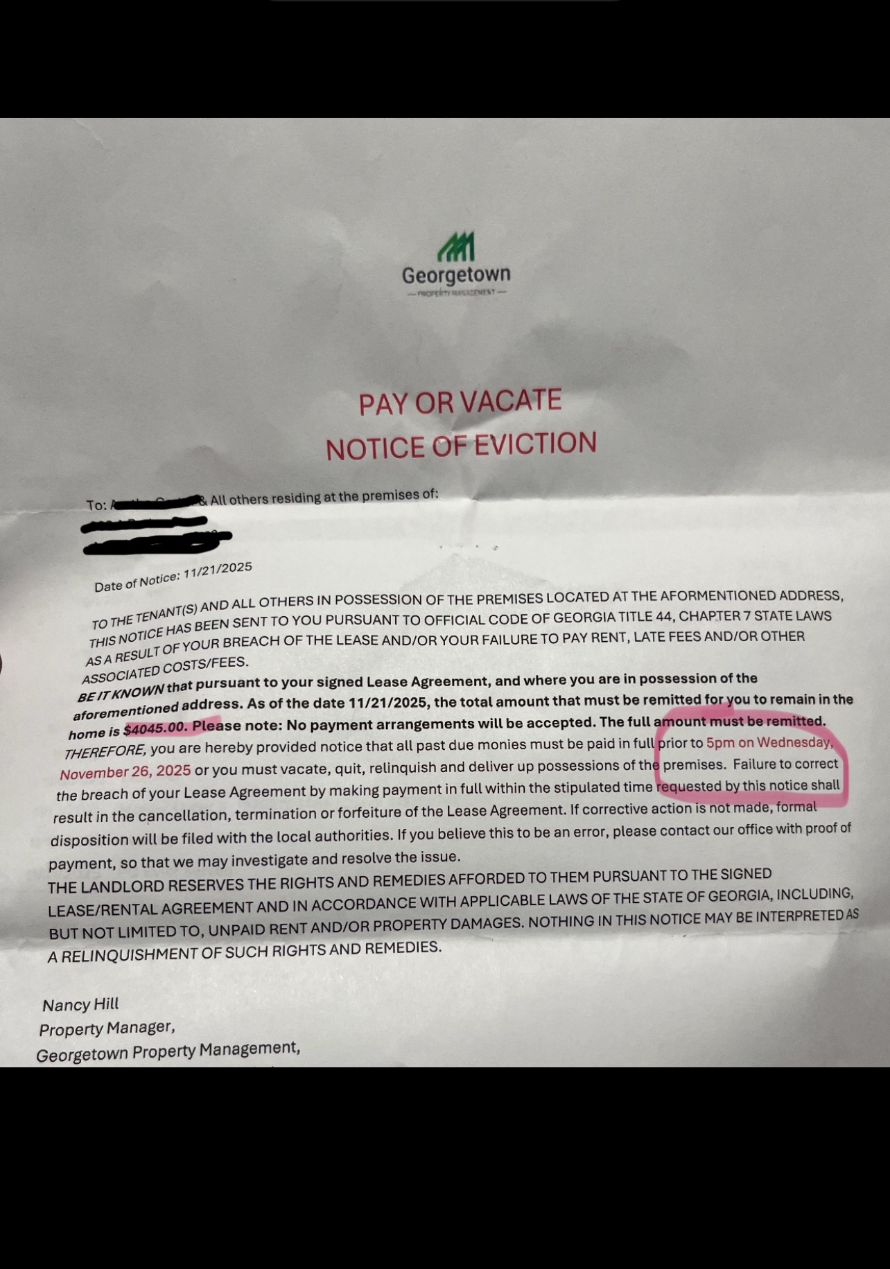 Now, despite picking up a second job and riding my brother’s bike to work to make ends meet, she has been given a sudden eviction notice. She now must pay $4,045 total of incurred debt towards rent.