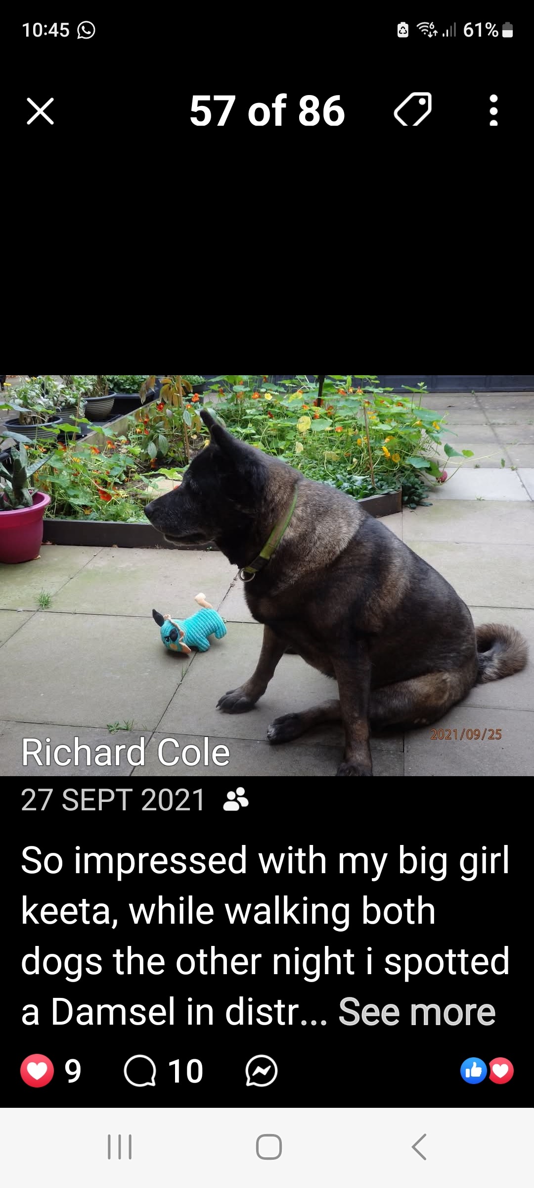 He had rescued Keeta from being pts when she was found running loose next to a canal, her owner it transpired had drowned and she'd been running loose for 2 weeks before Richs best friend managed to catch her. Rich was in a very bad way with his mental health at the time and his friend knew knew this and told him he had to take the dog or the dog warden warned she'd be pts she was around 18 months old, they saved each others lives quite literally. The name on her chip was Nikita and Rich wanted to change it so he rang me and we talked about it and I said hey what about Keeta? And he loved it. She was his constant companion for 9 long years and they were besotted with each other. Akitas are an extremely loyal breed who bond massively to their humans and they were inseparable.