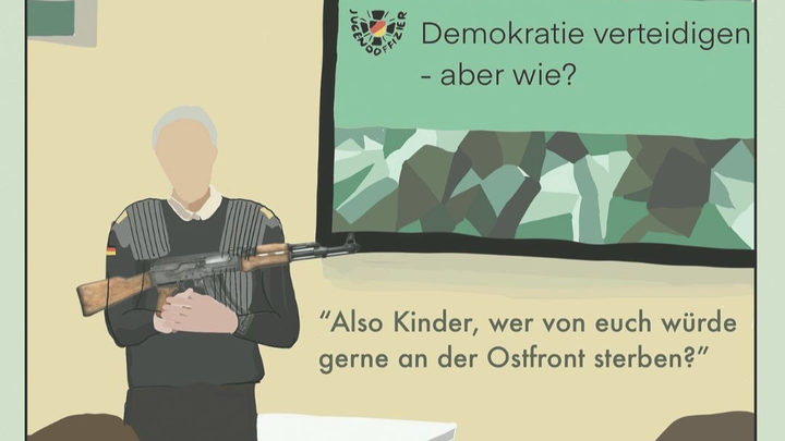 Anfang Februar wurde erneut ein sogenannter „Jugendoffizier“ der Bundeswehr an das Angell-Gymnasium in Freiburg eingeladen. Unter dem Motto „Demokratie verteidigen“ sollte er dort Werbung für die Armee machen. Schüler:innen wollten sich das nicht einfach gefallen lassen und gründeten eine Zeitung, in der zum Protest gegen den Bundeswehr-Besuch aufgerufen wurde. Daraufhin drohte die Schulleitung sofort mit Verweisen und zog einen Genossen aus dem Unterricht, um ihn durch unangekündigte Gespräche einzuschüchtern.
