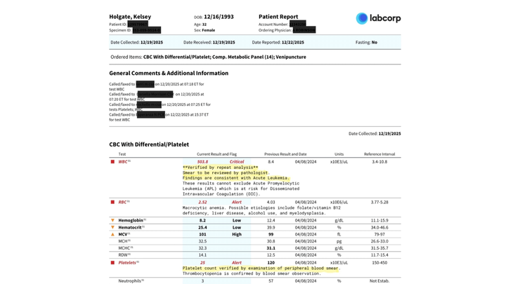 When I was 16, I was diagnosed with a rare inherited genetic mutation called RUNX1. This mutation affects normal blood cell development and function. Clinically, it is associated with: