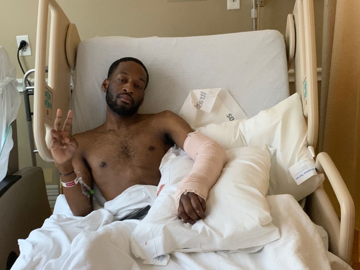 Due to his wrist bone being exposed, his