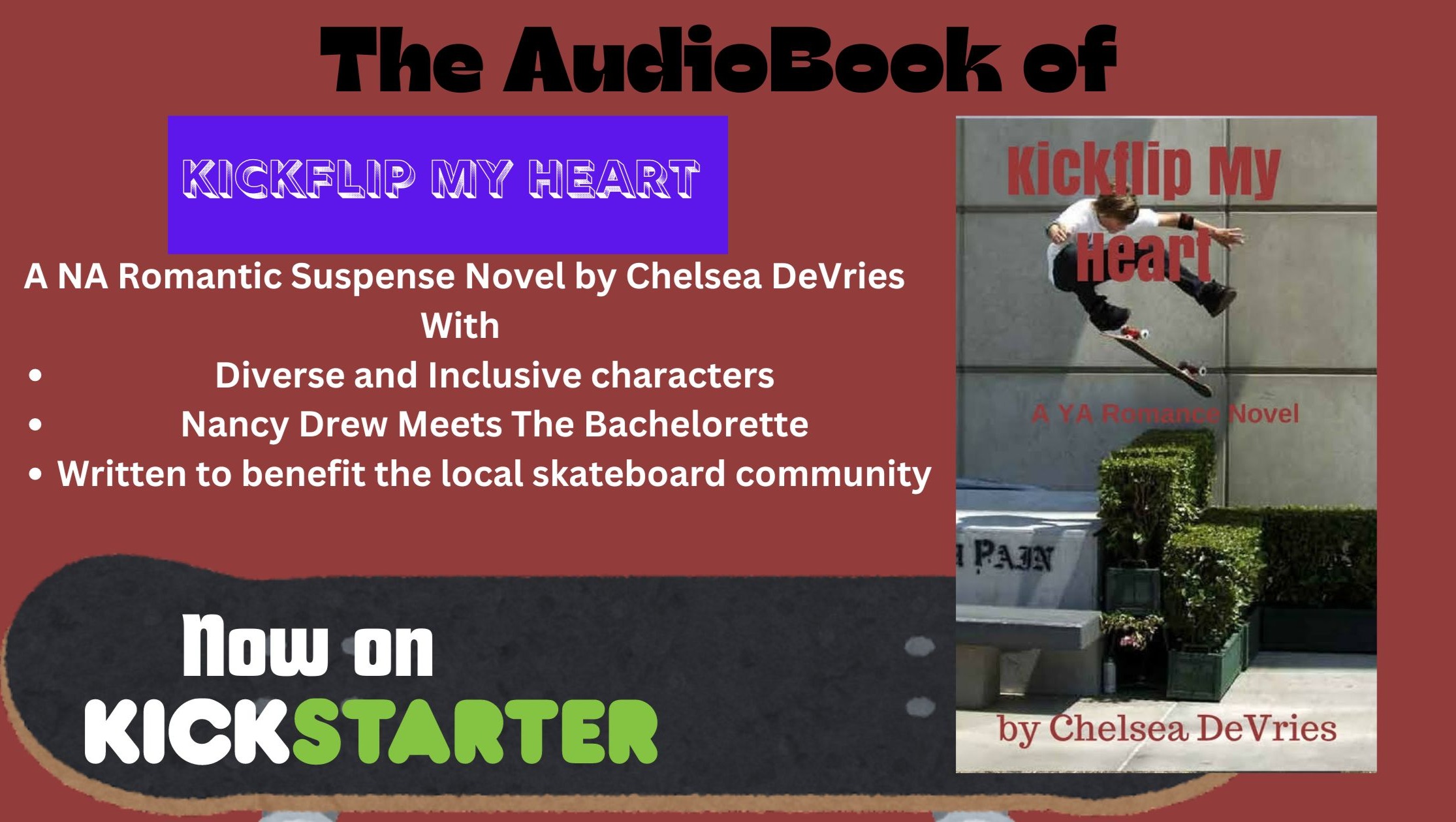 I would be honored to have your support to edit, format, copyright, certify, and publish Kickflip My Heart. Any extra money raised will help me promote the book as well as publish the audiobook with Audiobook Network.