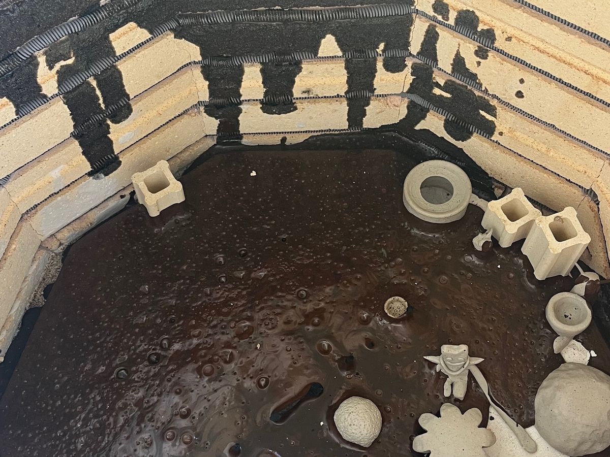 Disaster struck last night while firing a bisque, kiln miss fired and cause all low fire clay to melt.