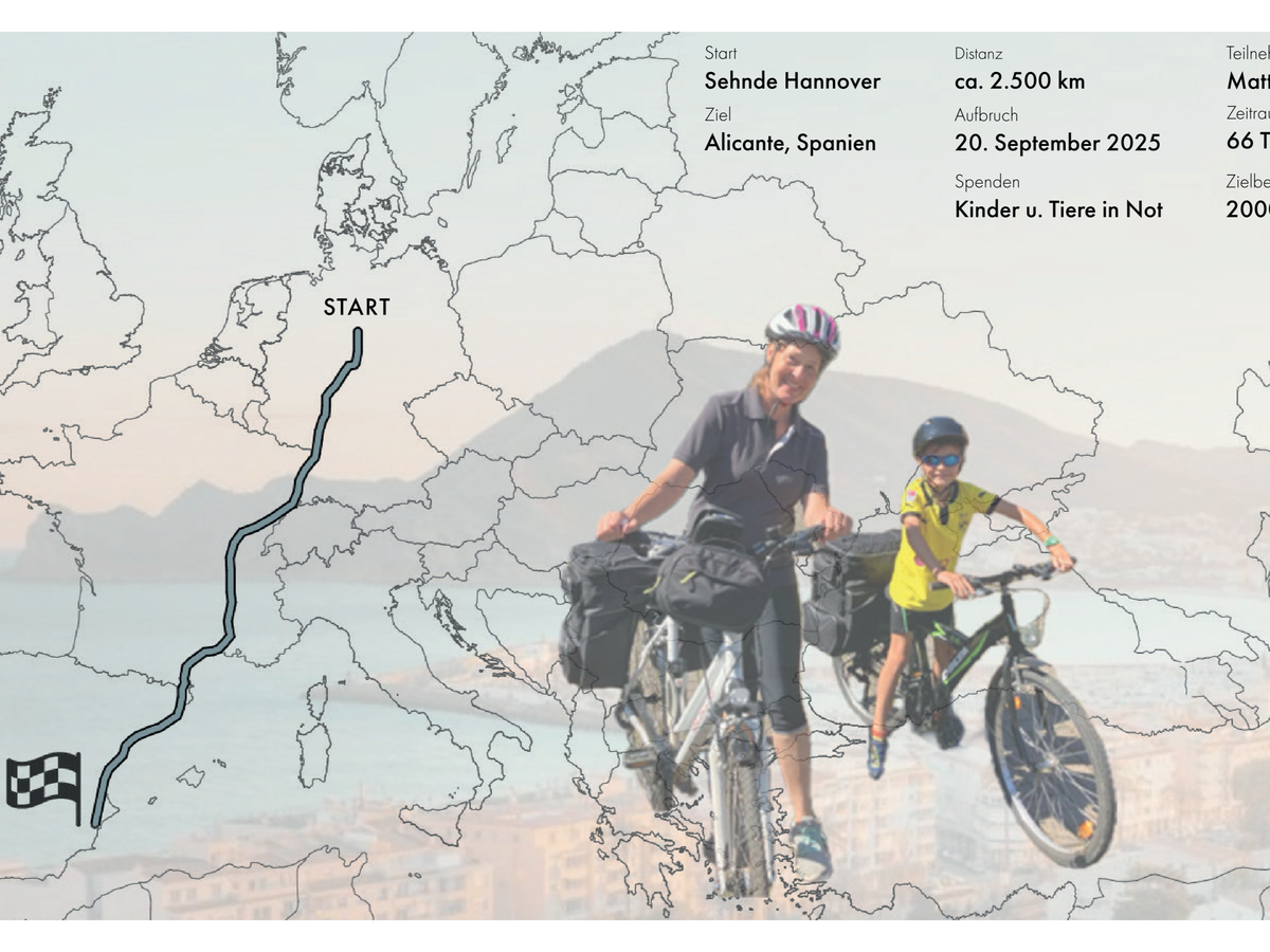 Matteos großer Wunsch ist es, mit dem Fahrrad von Sehnde (bei Hannover) nach Alicante in Spanien zu fahren, das sind ungefähr 2.500 km.