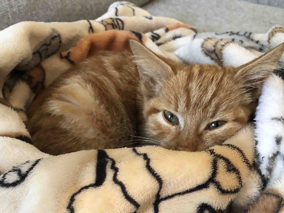 Hi, my name is Becca and on Sunday August 1st, I took in a very sick stray kitten. He was found very weak, pale, and extremely skinny. He was immediately taken to the emergency vet where he was diagnosed with flea anemia and received a blood transfusion. I picked him up the next day and he looked like a whole new kitten. He was eating, drinking, walking around, and he quickly became attached to me. I was never planning on keeping him because I already have too many pets, so I reached out to a shelter who will take him into their care this week.