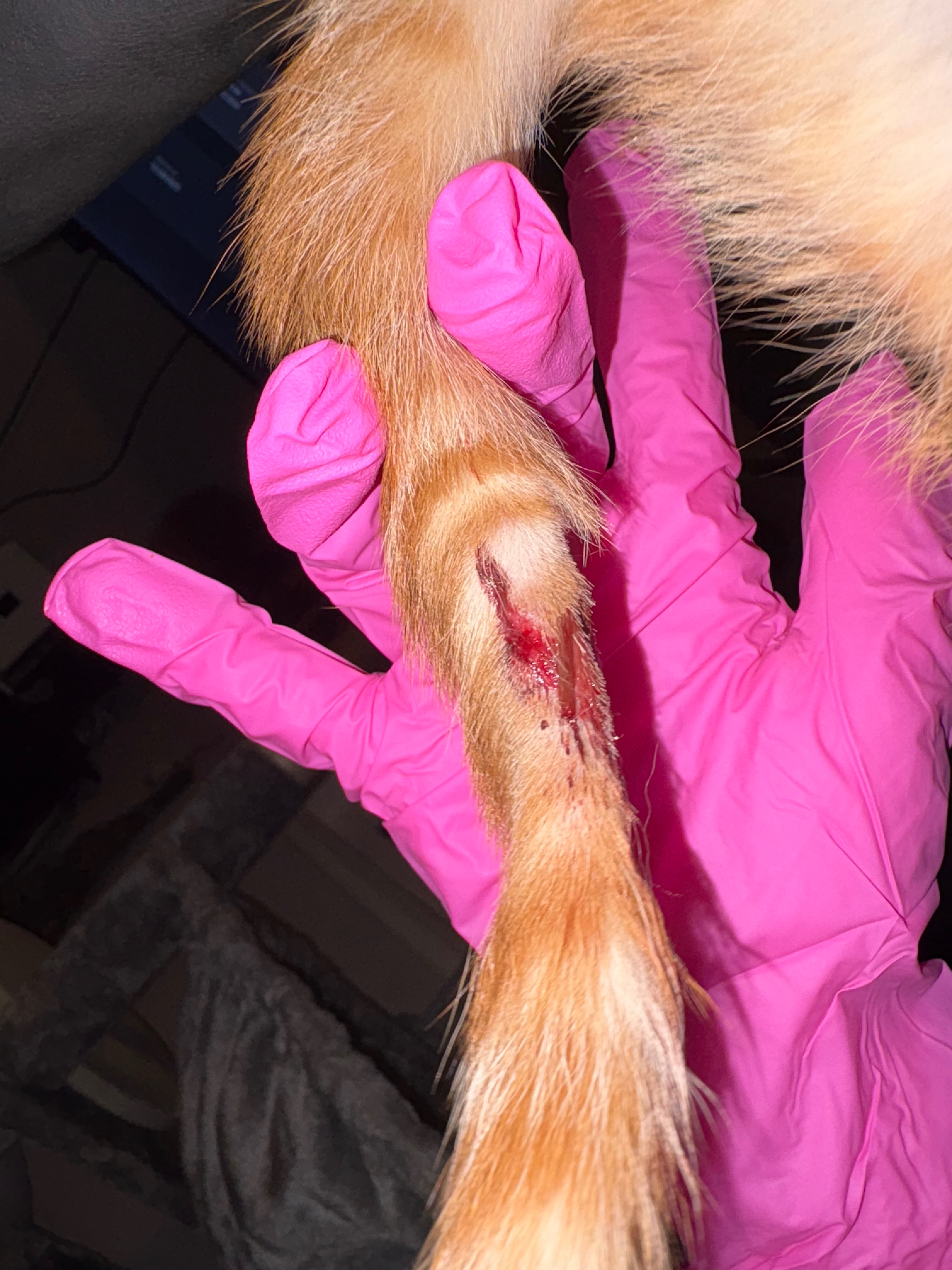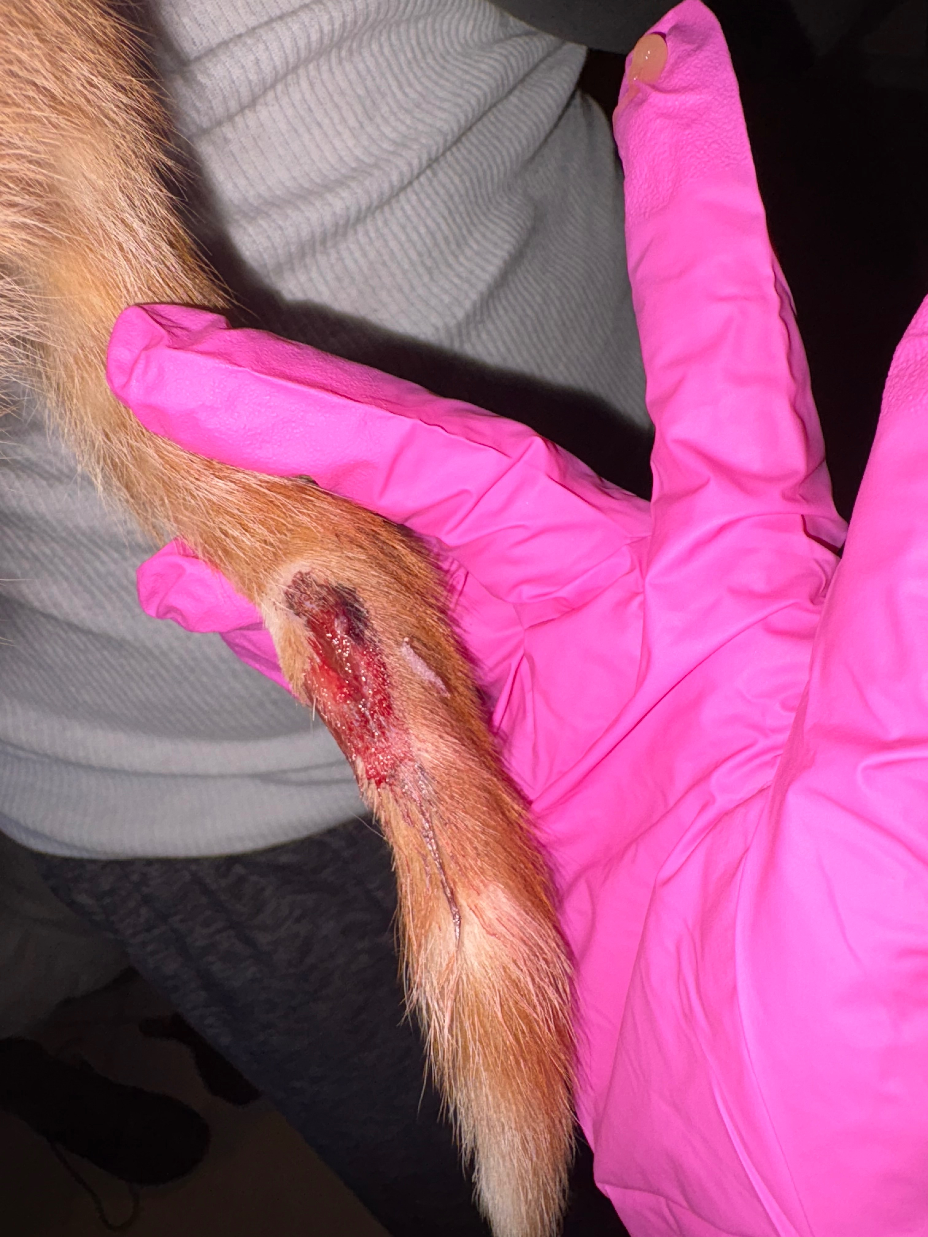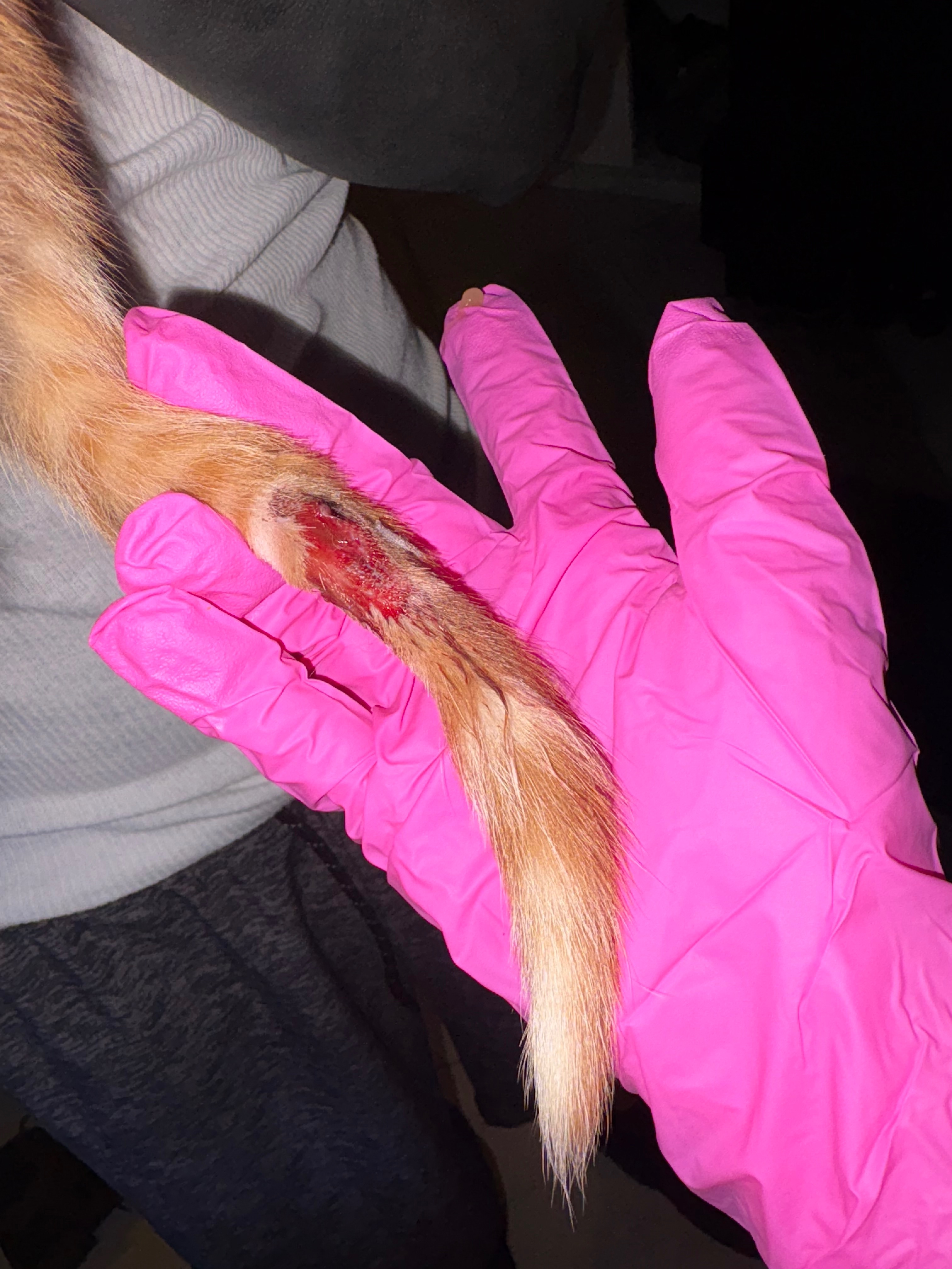 To say these last 24 hours have been exhausting would be an understatement. About a week ago, I rescued a new kitten who had been living as a stray. Today, he went in for his first round of vaccines, and during that visit we discovered he had severe wounds on his tail (as shown in the photos).