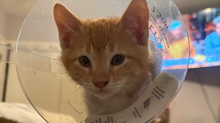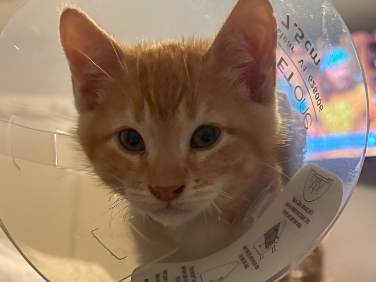 Later that night, our kitten’s tail began bleeding significantly more. The cone wasn’t doing its job… instead of preventing contact, it was rubbing against the wound and causing further irritation. He was clearly in pain and declining, so we rushed him to the emergency vet, hoping they could clean and bandage the injury.