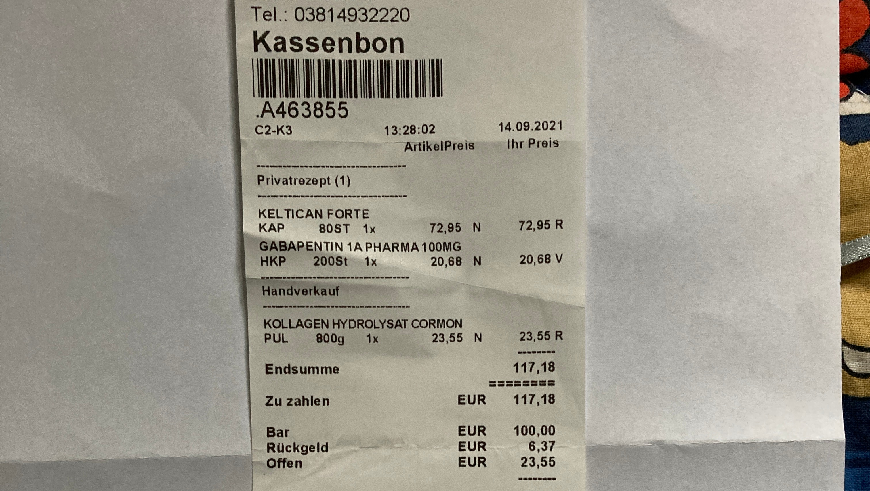 Die wöchentlichen 45 Euro für die Physiotherapie sind ebenfalls unerlässlich, da dies meine einzige Chance ist, noch etwas Muskeln aufzubauen um meine schmerzenden Wirbel zu stärken.