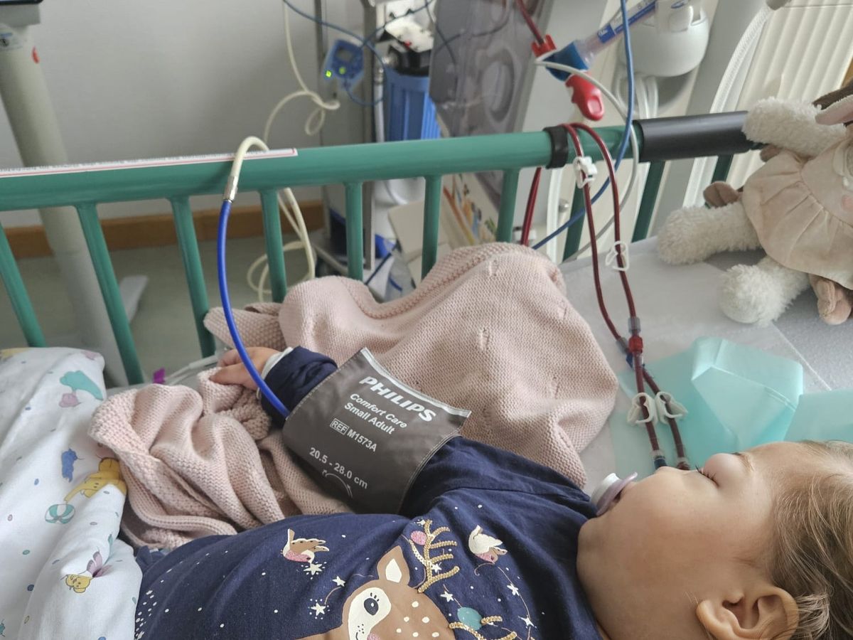 Zoe leidet am nephrotischem Syndrom, einer schweren Nierenerkrankung, bei der zu wenig Urin ausgeschieden wird. Das führt zu stark angeschwollenen Gliedmaßen und erschwert ihr tägliches Leben enorm. Sie hat dauerhaft angeschwollene Augen und sogar das Laufen, das sie erst kürzlich erlernte, ist plötzlich nicht mehr möglich. Ihre kleine Welt besteht im Moment aus vielen Medikamenten, Behandlungen, Dialyse und