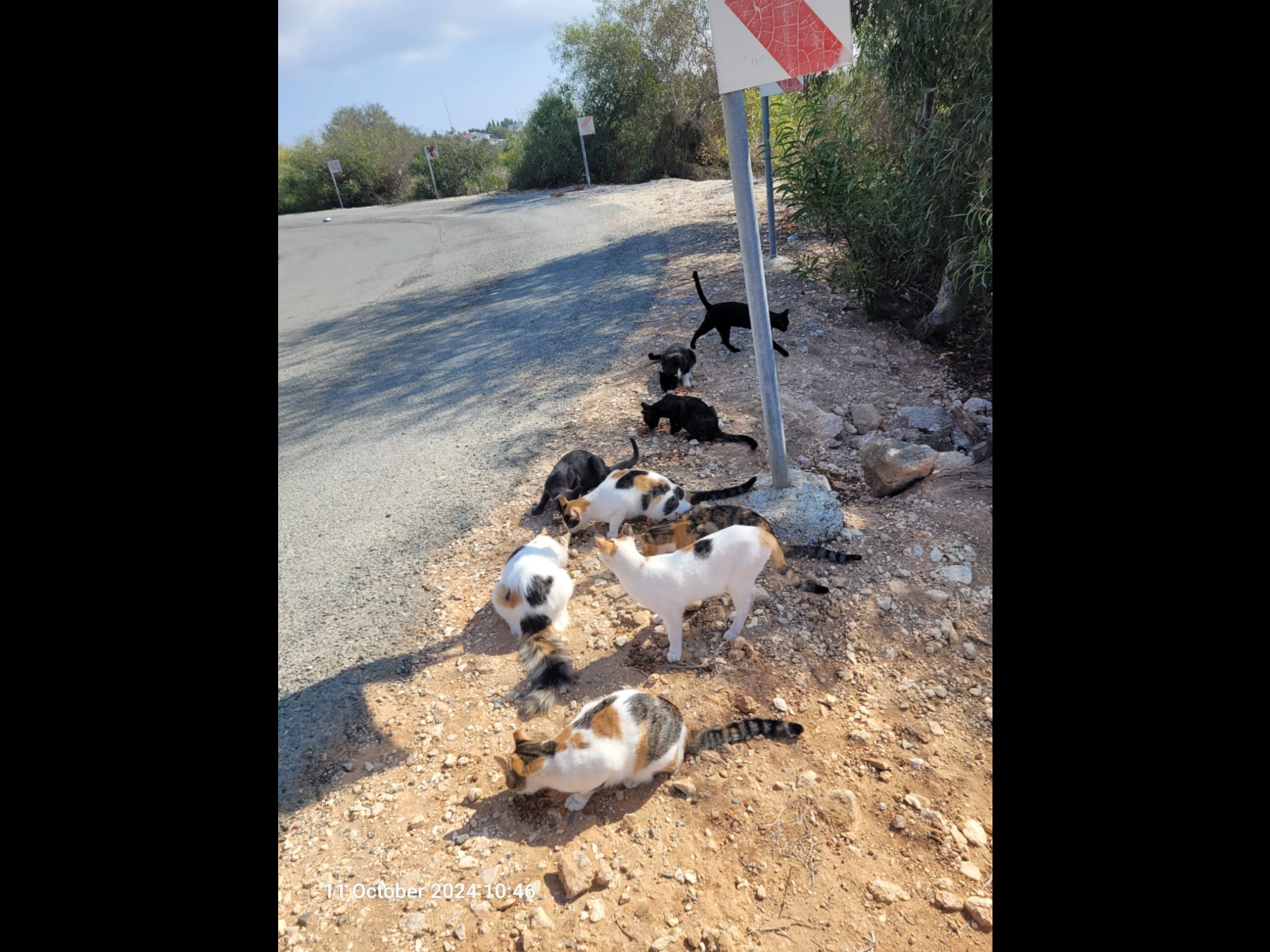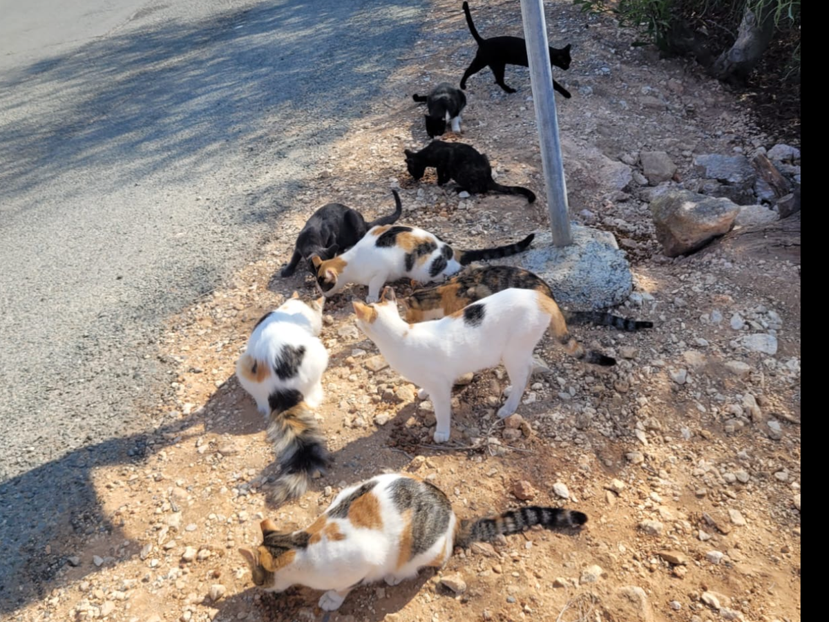 3 years ago, I came across 5 little girls, in the photo you can see them as the white ones. Since then I have acquired around 20 cats as people have been dumping them. I don’t find this to be a problem as they take care of the rat and snake issues in the area however recently someone has binned all of the beds, toys, bowls, shelter and any other items I have bought for the cats to use as they do not want cats near their house.
