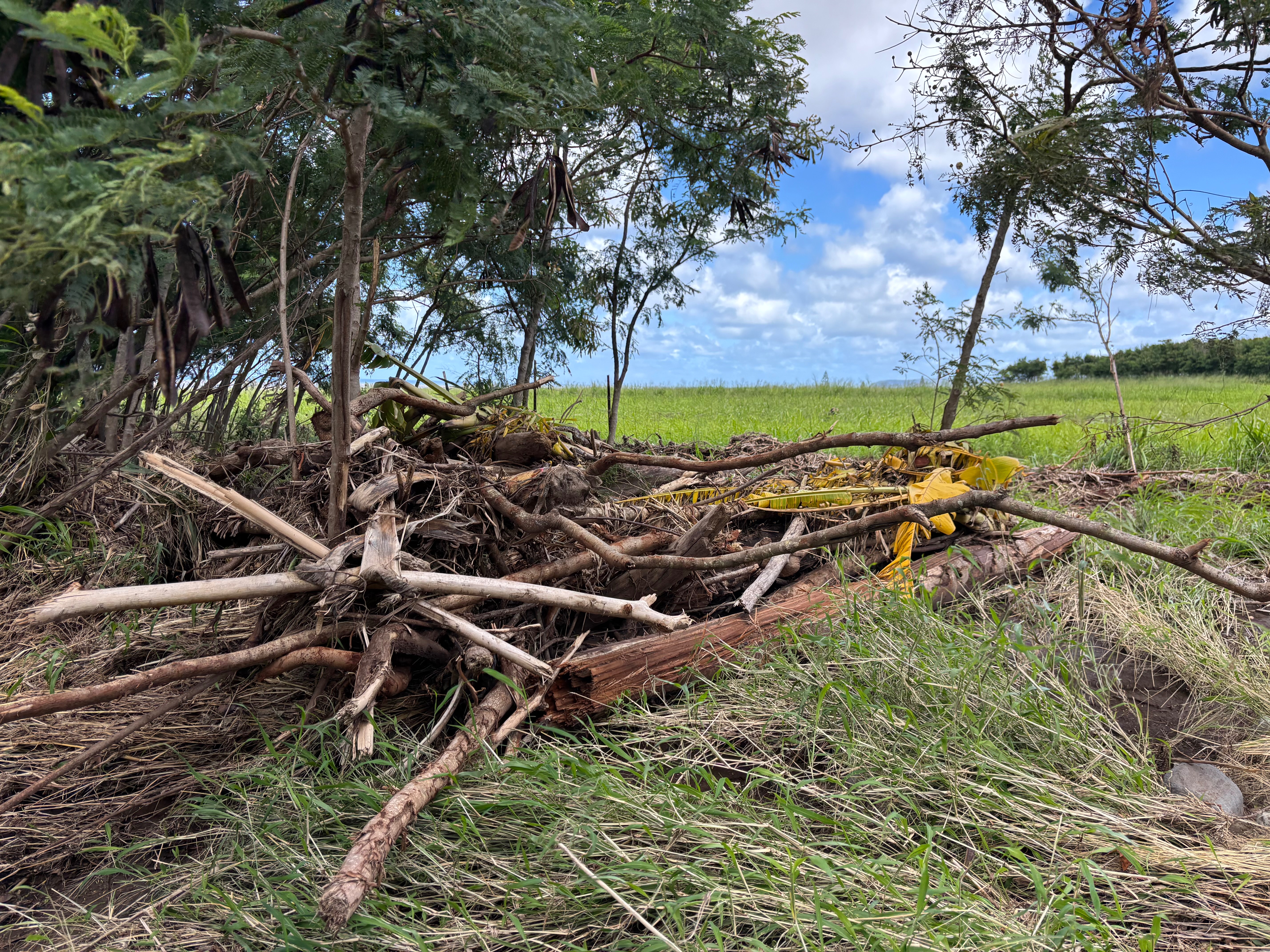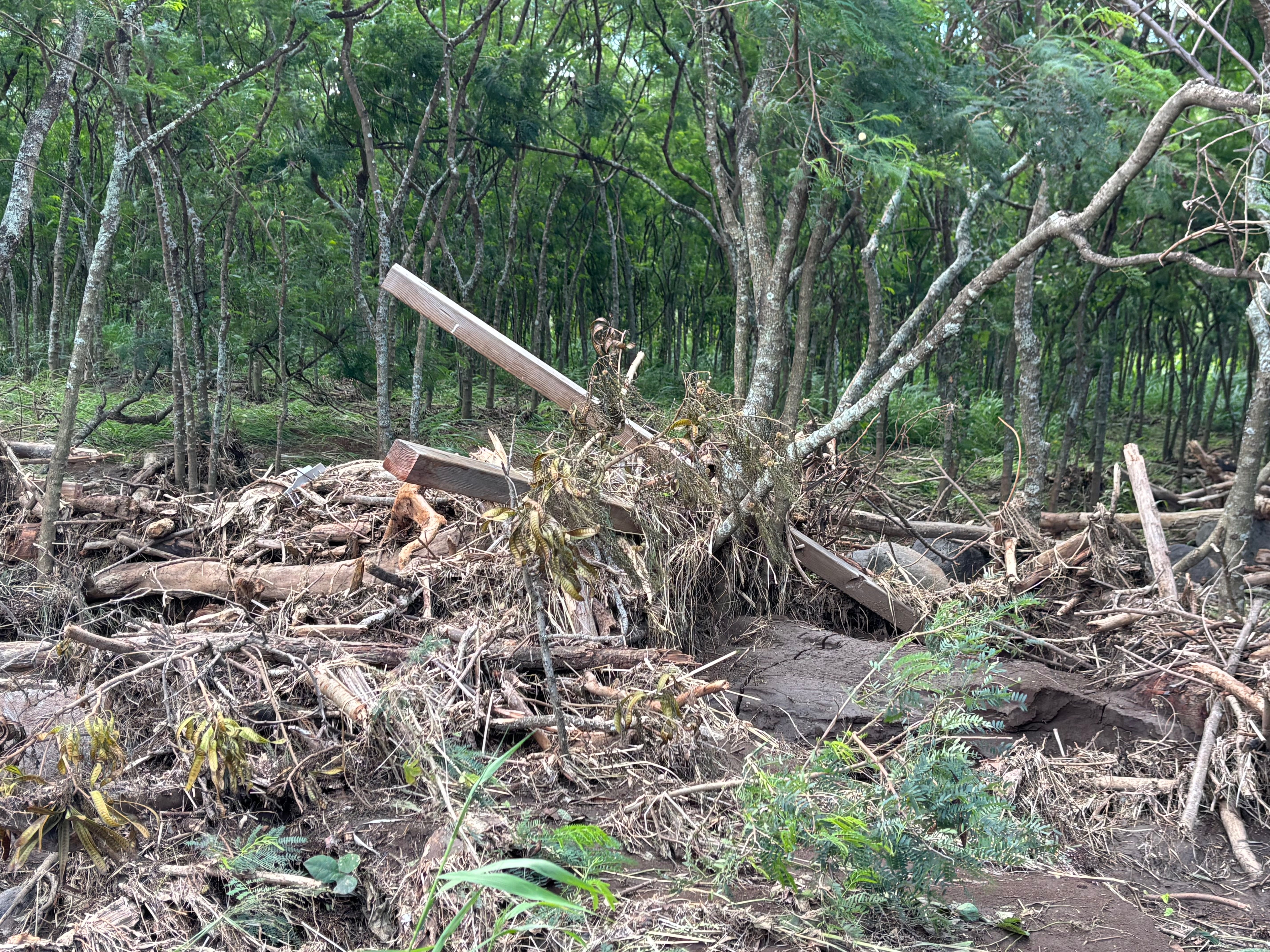Many things were destroyed, some of our beloved animals, mala (dry kalo patch), paddocks, banana trees, bee hives, fencing, farm gates, irrigation lines, mango trees, & farm tools/supplies.