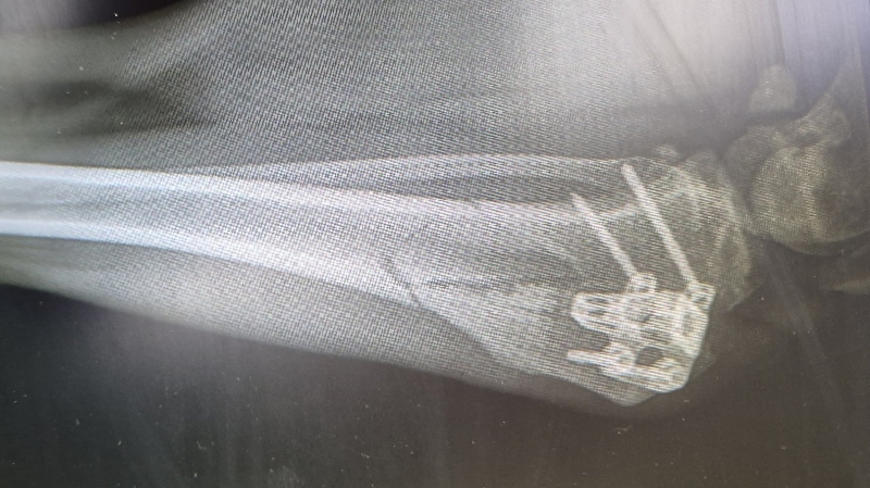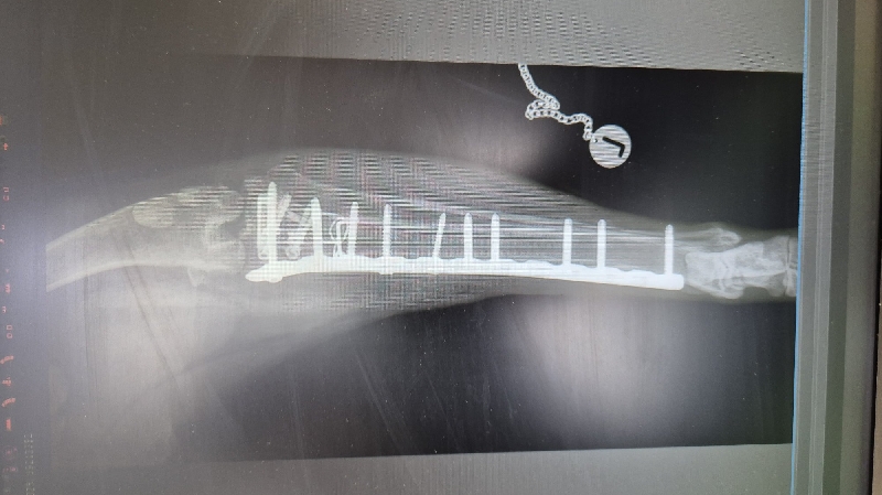 Nora hatte letztes Jahr einen Kreuzbandriss gehabt, sie wurde operiert. Leider hat sie sich 2 wochen (26.05.25) später das operierte Bein gebrochen.