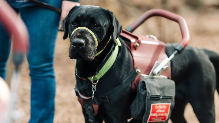 Tait is a 2 year old black lab trained by Canine Partners for Life, and he will be my first program trained service dog. He is trained to retrieve items off the ground for me, help carry items, turn on and off lights, as well as assisting me with my balance and provide forward momentum to help me with fatigue related to my disability. Tait also alerts to cardiac episodes and migraines, which we hope will allow us to treat them earlier and improve the quality of my life.