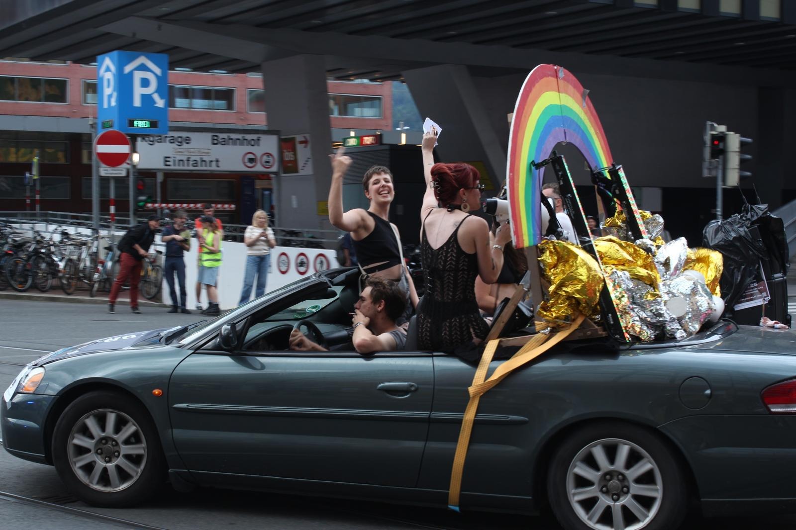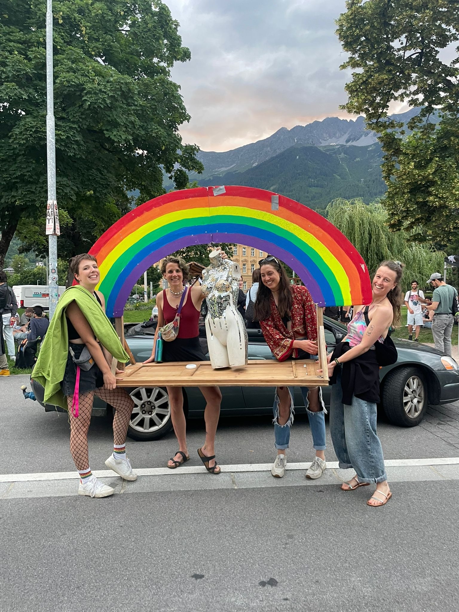 Denn Sichtbarkeit ist kein Luxus. Queeres Leben ist immer noch von Diskriminierung, Angst und Unsicherheit geprägt – auch hier, in Tirol. Deshalb braucht es Räume, in denen wir nicht nur geduldet sind, sondern willkommen. Räume, in denen queere Perspektiven Platz finden, laut werden und gefeiert werden dürfen. Unser Wagen soll so ein Raum sein.