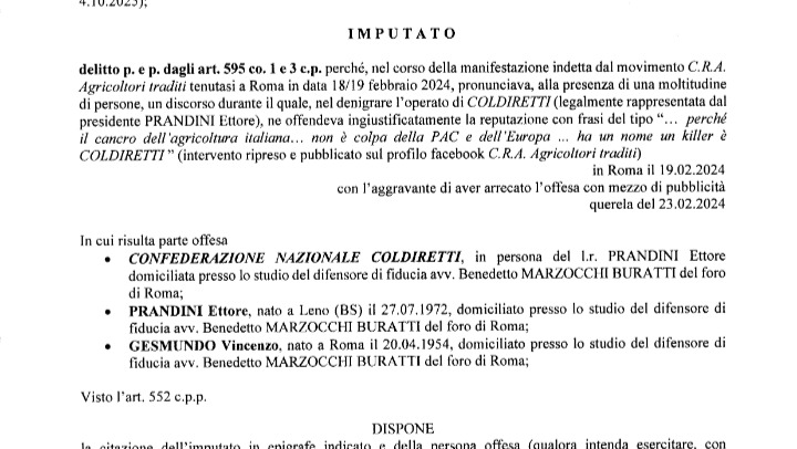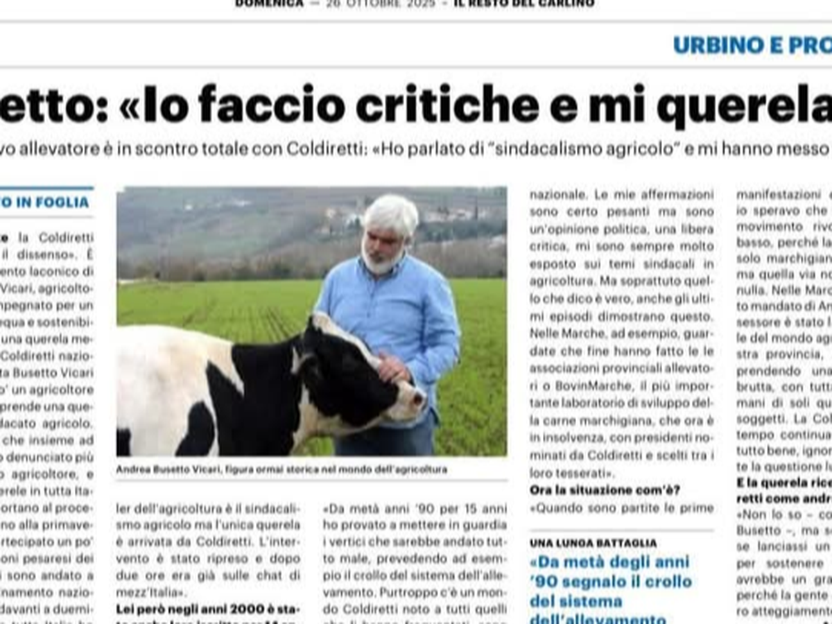 Buonasera a tutti, sono Andrea Busetto Vicari di Urbino, ho 65 anni e da 40 faccio l'agricoltore. Ho fatto diverse battaglie per la dignità degli agricoltori e non solo..... Mi sono fatto evidentemente molti nemici, mai avrei creduto però di dover sostenere un processo presso il tribunale di Roma dal prossimo aprile, in quanto avrei offeso l'onore del sindacato Coldiretti, e per questo la procura di Roma mi ha rinviato a giudizio. Pensavo che in Italia ci fosse ancora libertà di espressione, e anche che si potessero usare toni forti di fronte alla rovina del mondo agricolo. Qui allegato il rinvio a giudizio con le motivazioni Qui allegato il rinvio a giudizio con le motivazioni