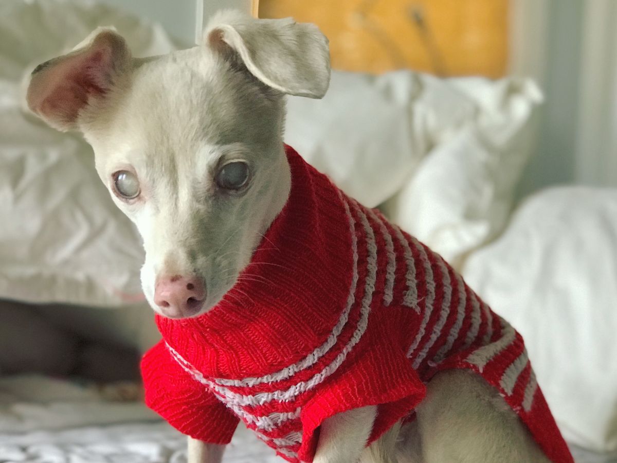 Hi there. This Go Fund me is for Lady, our blind, albino dachshund mix, who we adopted 4 years ago. When we first met her, it was clear that she had a fairly intense life. When she ended up at the shelter, she was pregnant, and when we adopted her, her mouth was riddled with gum disease and dental decay. It took her about a year to start warming up to us, as she was a shy and cautious, little creature. Over the years she has become increasingly more affectionate in her own ways, and has learned to trust and love us. She loves spending her mornings out back barking at people as they walk by, going for walks (despite bumping into everything), and more than anything, she loves getting cozy in one of her many blankets and beds around the house.
