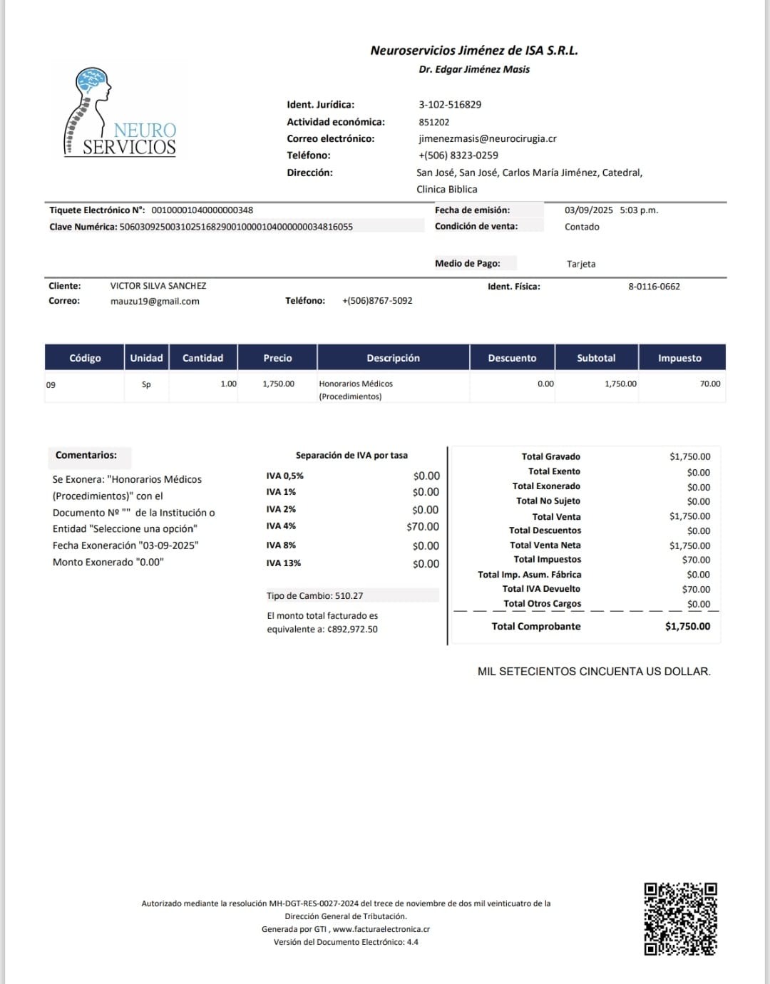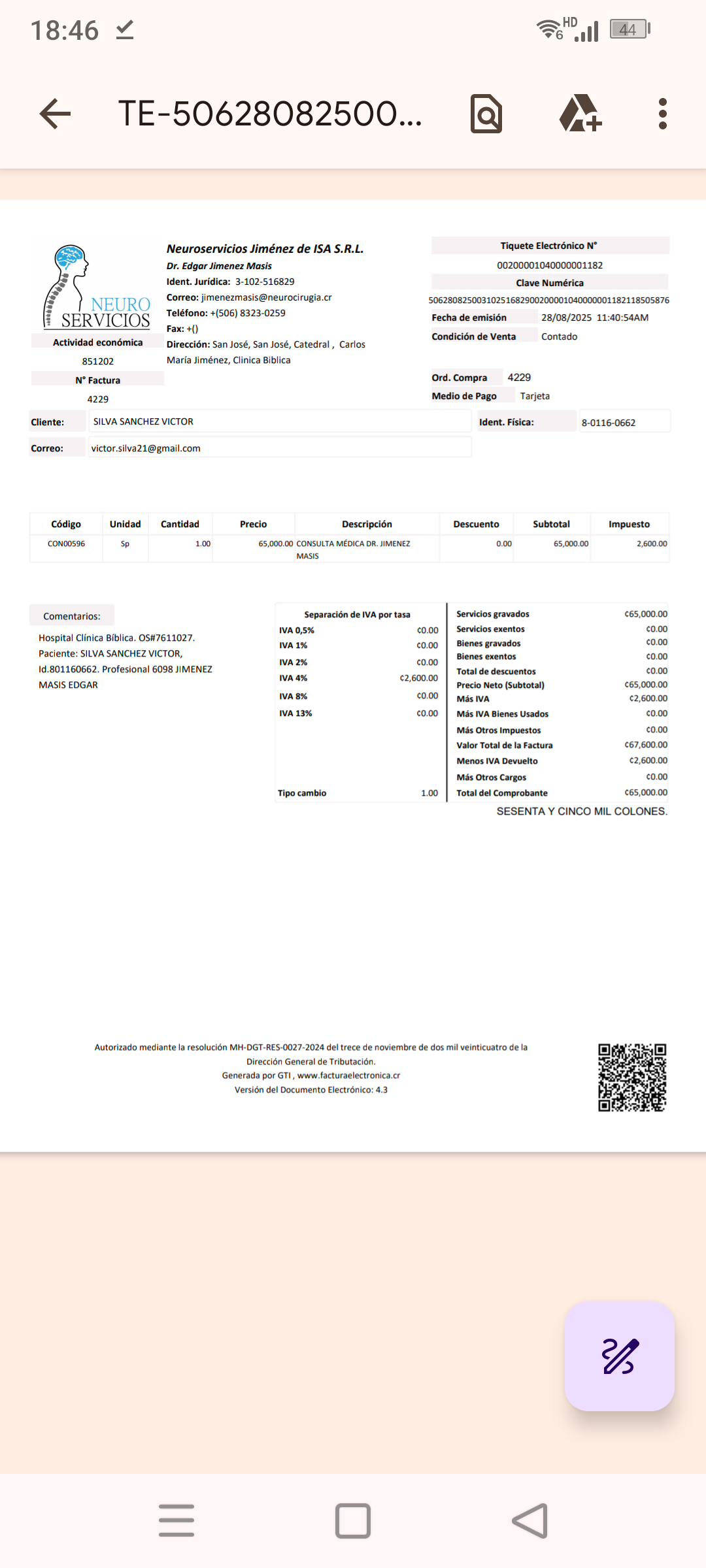 18574.00 total is approximately what I have spent on my medical costs since July 4, 2025. And I want to mention that I live in Costa Rica. If I would have waited through our public health care system I would had to wait 2 -4 years for this operation. I would not be able to wait that long. July 4 ,2015 is the date when I started experiencing pain in my right leg and back pain in my lower Lumbar area. Which progressively kept getting worse day by day. I kept trying different treatments like physical therapy, acupuncture, massages, Stretches, light chiropractic treatment and many more. None worked and I wanted at all costs to avoid back surgery. Hearing and knowing of many horror stories of family members and friends that had back surgeries and were left worse than they were before. So that scared me beyond belief. So I even avoided the subject. However, on Thursday October 2, 2025 I had a medical appointment with Doctor Katherine Escoe a Neurologist. She examined me and spoke to me in a comforting, warm, truthful but direct way. She showed me simply and clearly on my MRI results what my true lower back condition was. My sister in law Marizita who is a nurse was present during this medical visit and she concurred with the doctor. So after quick prayerful contemplation I knew all my options had been exhausted. Katherine, kindly responded with an option to operate that weekend on Saturday October 4, 2025. On Monday October 6, 2025 she would be on vacation for two weeks. With the pain I had been suffering I felt I had to accept this opportunity for this back surgery on Saturday. I hoped that after this surgery I might start to slowly feel some relief from the excruciating pain that I had been experiencing. Up to this time I was putting most of my medical expenses on my credit card because I had no other option. So, these surgical costs were also all going to have to go on my credit card. So, that's what I did. I placed all these surgical and previous cost on my credit card. However, this is not the full story. If you would like to hear the rest of the story and would like to see all the medical receipts I would be glad to share them with you. Please contact me with any questions and I'd be glad to answer them.
