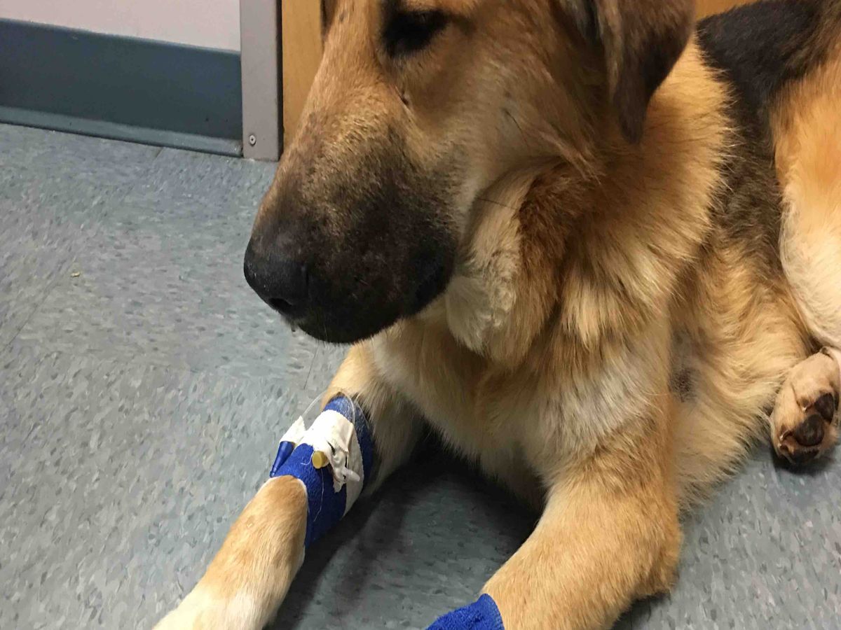 We don’t know who the owner is and he doesn’t have a micro chip. We have affectionally named him Lando and are asking for assistance to cover the emergency vet bill as well as the pain medicines and antibiotics he will need to go home on.
