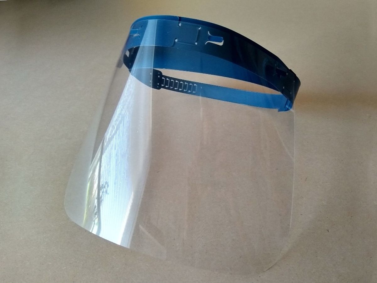 The clear visors are made from 240 micron PVC sheet, this is hand cut/prepared as it is not suitable for laser cutting, it is not able to withstand autoclave temperatures, but is robust enough to be disinfected using other methods.