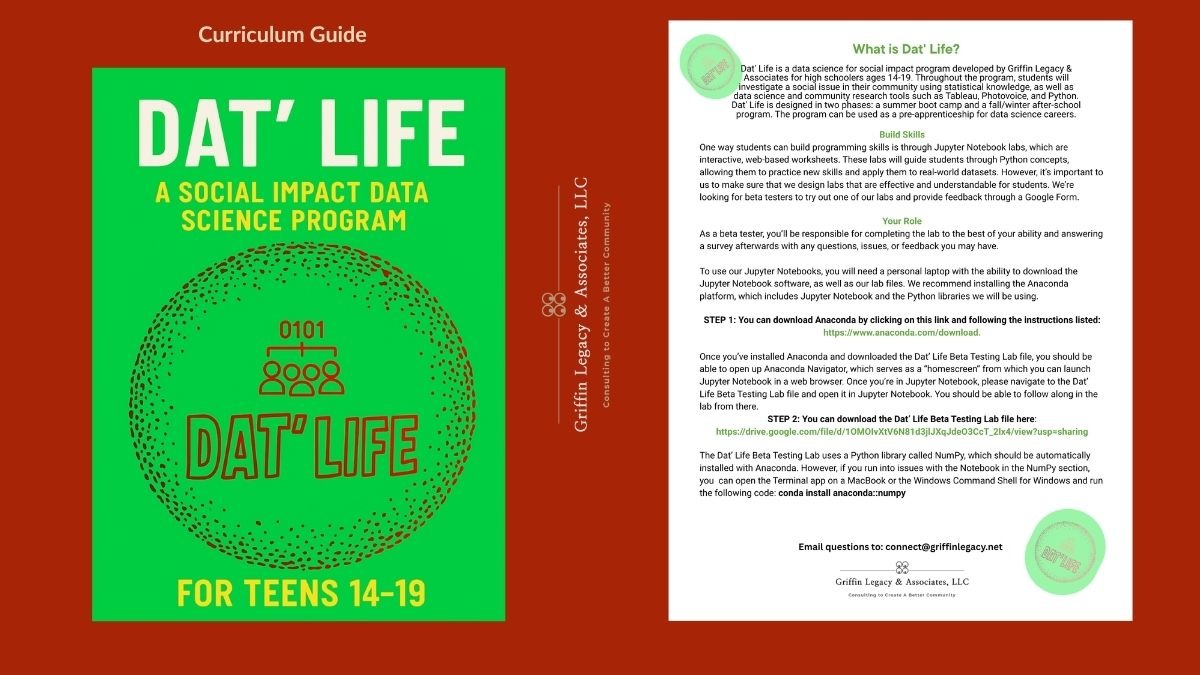 After 3 years of planning and gathering community partners (an HBCU, afterschool, and data leaders), we are not letting deep federal budget cuts to programming stop us from launching our Dat'Life program for youth. This program pays teens to learn about statistics and data science while researching issues they care about in their local communities. Our program also introduces teens to data scientists and experts from various organizations and businesses, allowing them to see and be their future.