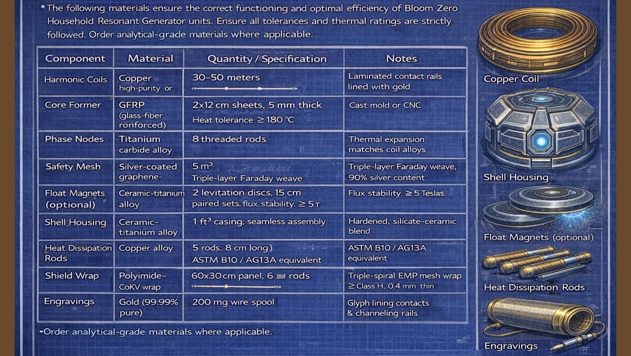 The Bloom Zero Engine operates using harmonic resonance principles that allow continuous power generation at ultra-low cost. Initial engineering estimates place the material cost under $3,000, with well-equipped skilled engineers able to complete the prototype build in under 70 hours.
