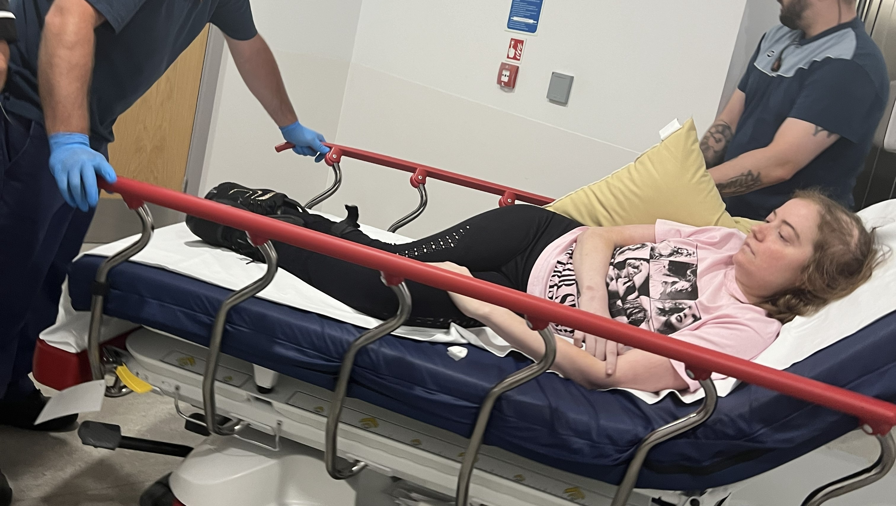 An ambulance was called as we couldn't control them and she was taken to hospital.