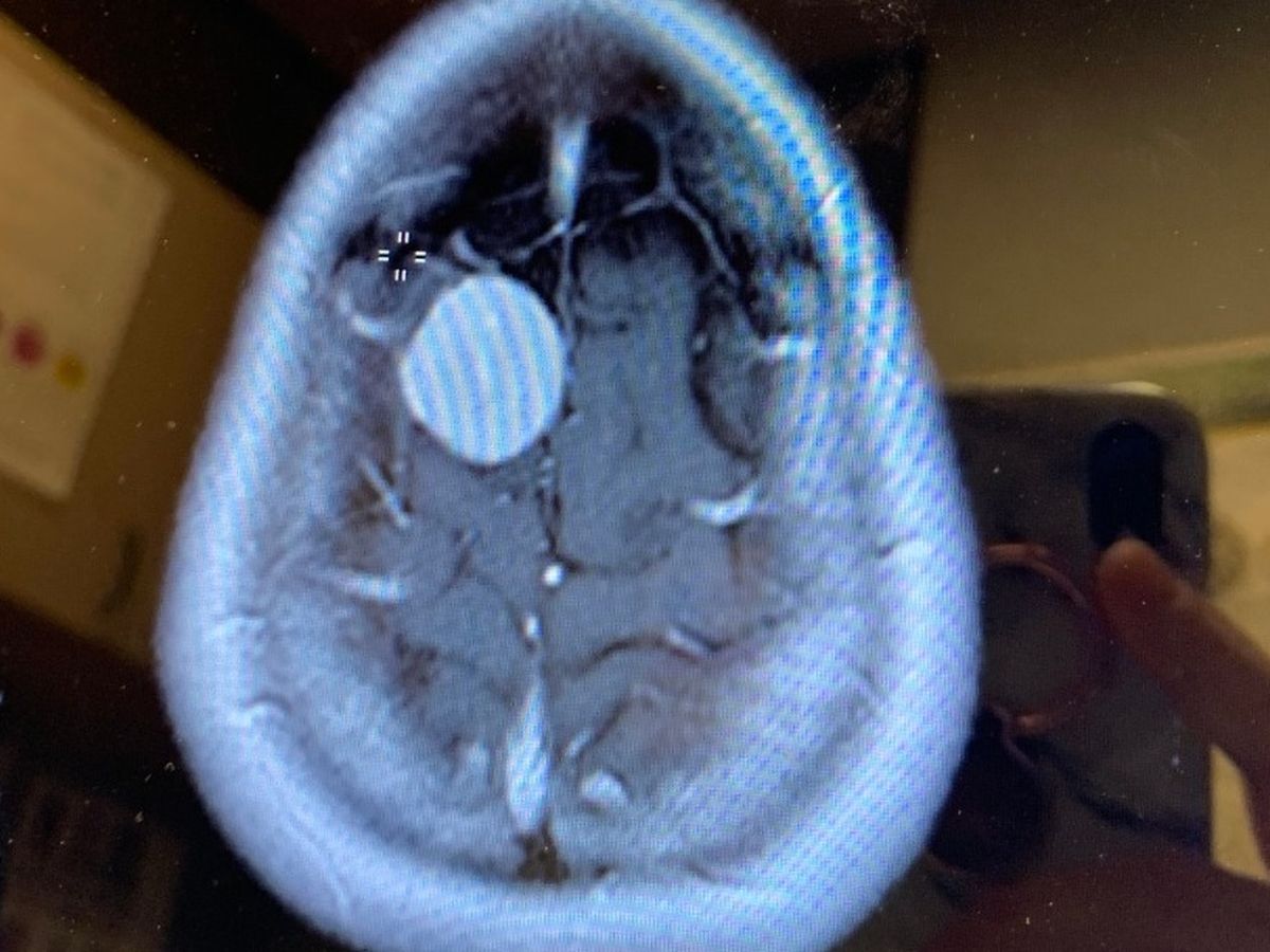 Laurie Worman has been diagnosed with a brain tumor called a Menegenoma. The tumor is growing at a very fast rate and is located on the top of her head (frontal bone), on the outside of her brain (outer cortex), and under the skull. She has a right posterior frontal parafalcine dural mass.