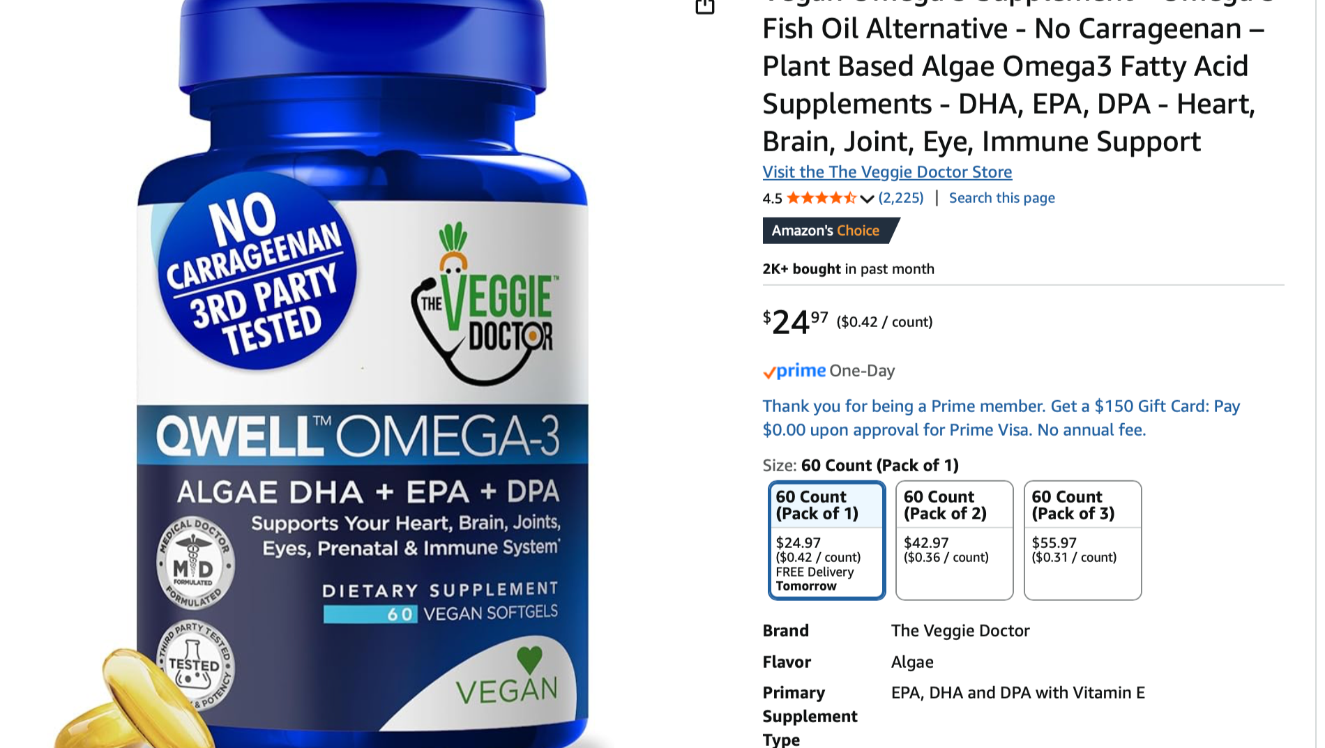 The Veggie Doctor Qwell Omega-3, Algae DHA + EPA + DPA
