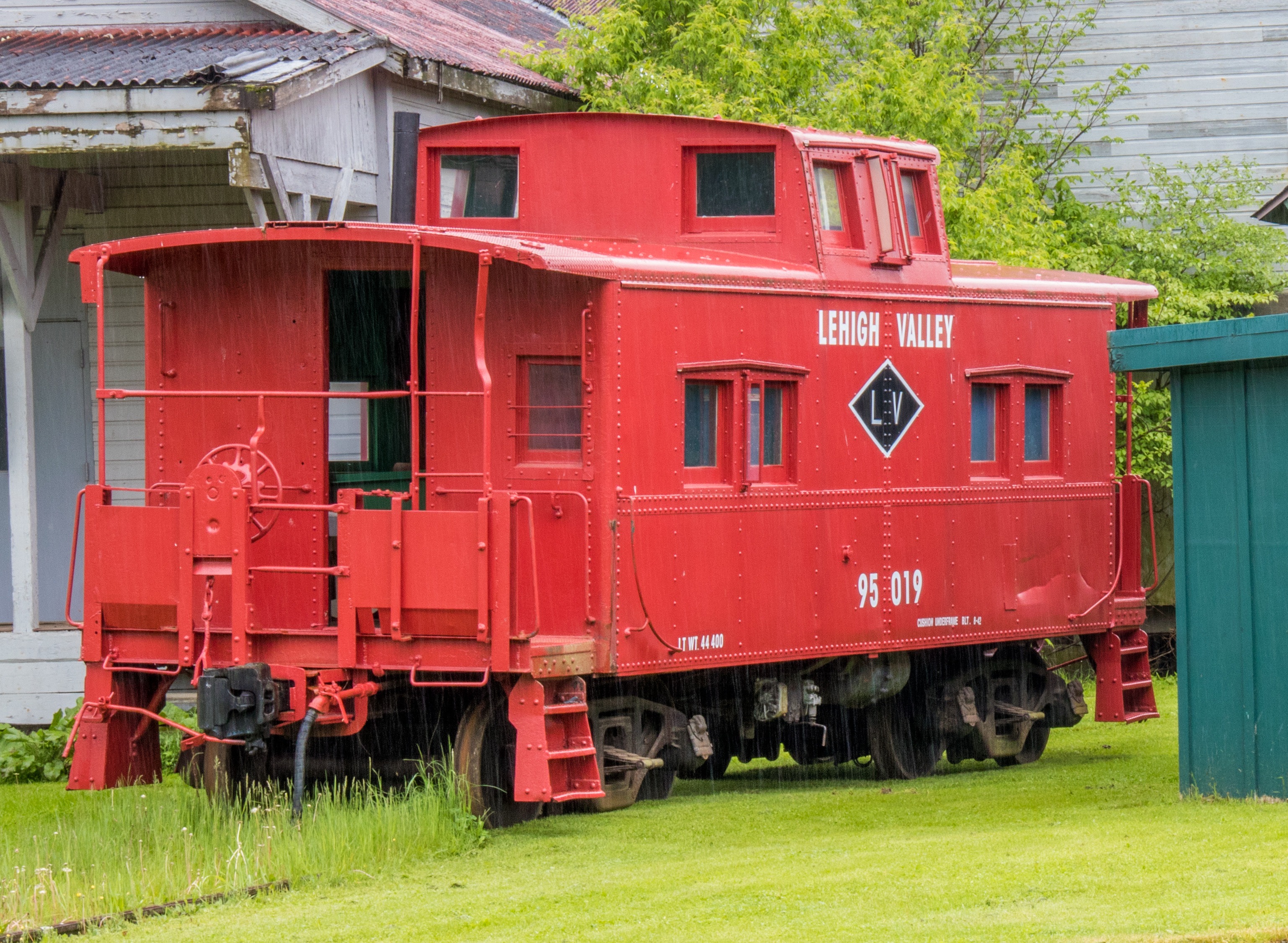 The caboose was built in Sayre, Pennsylvania in 1942. The Lehigh Valley Railroad had shops in Sayre were they produced caboose and other railroad cars.