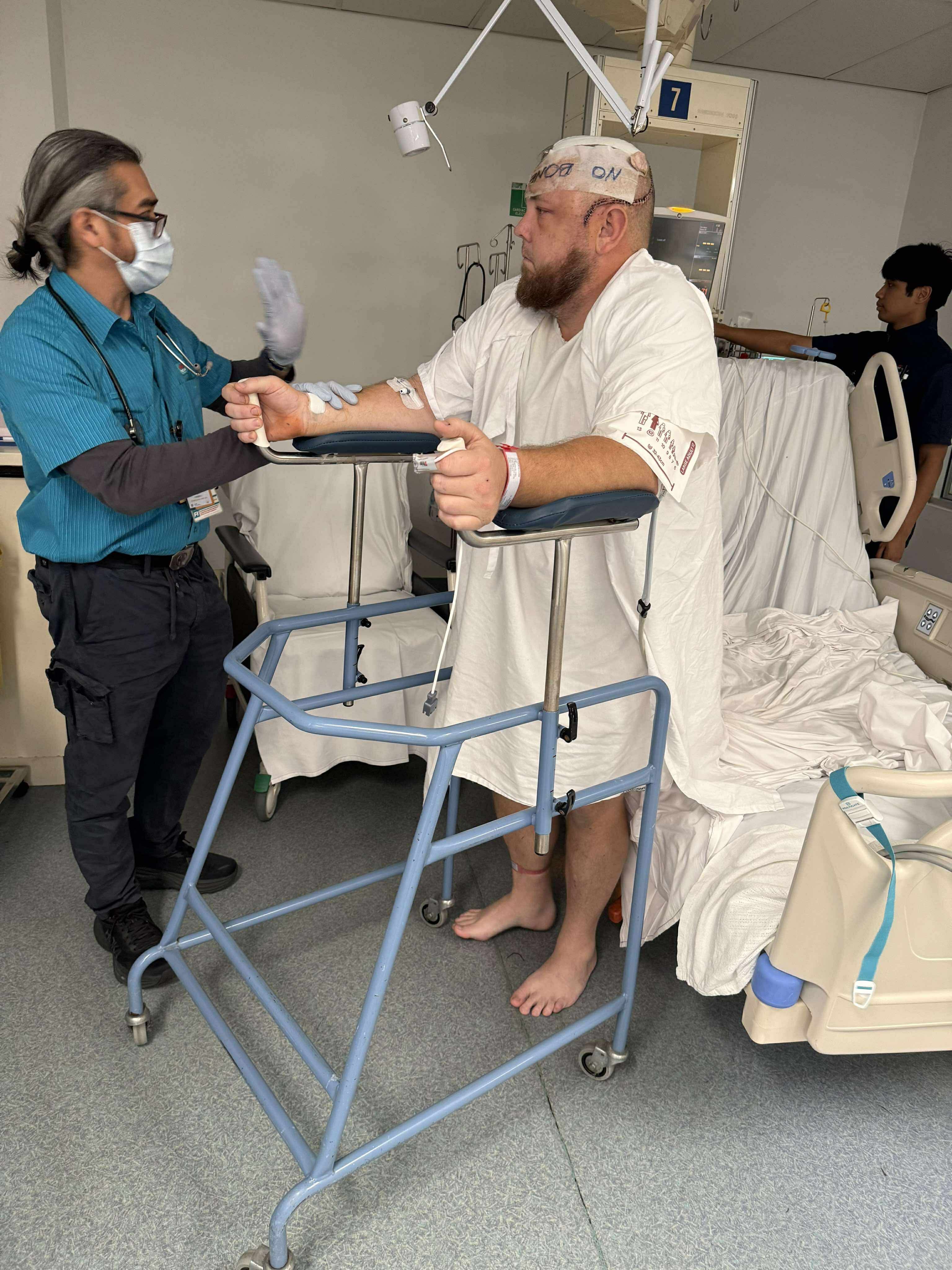 They’re pleased with his physical progress as Leigh is able to move his arms, walk with assistance using a walker, and follow commands (finally!). However, they remain concerned about his confusion and limited speech, which will continue to be closely monitored.