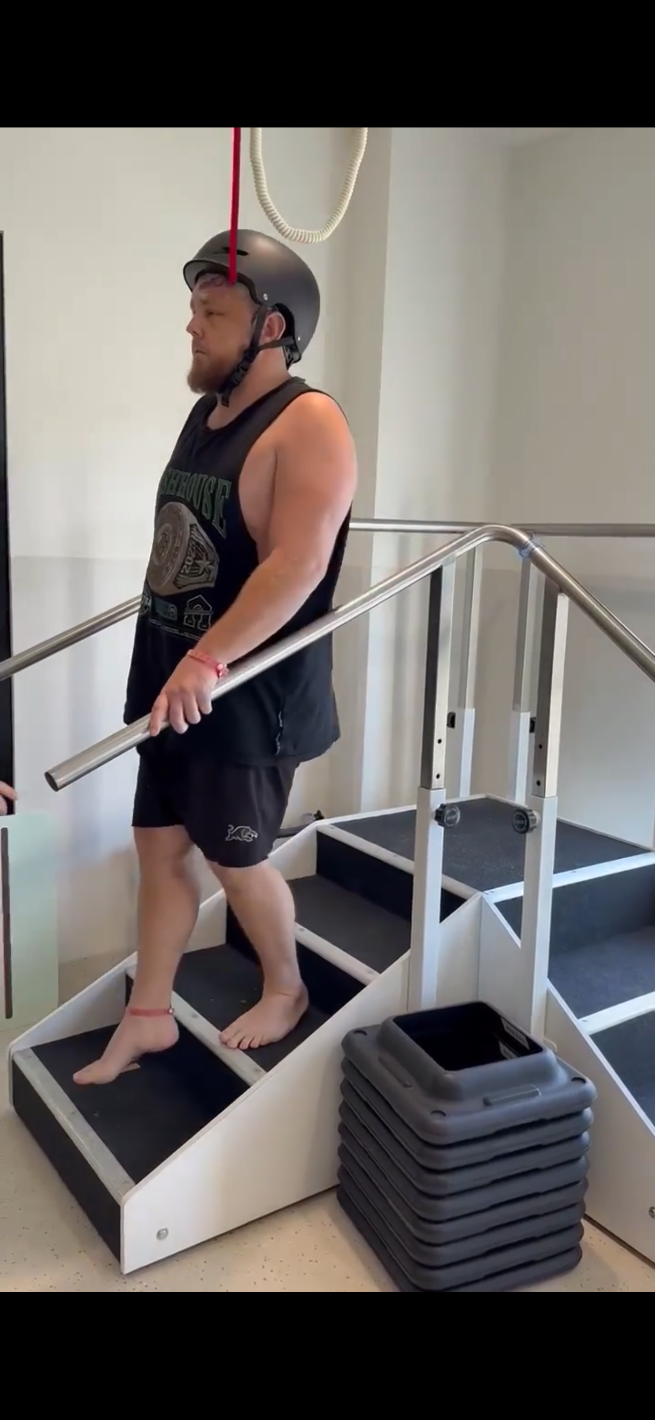He is now able to follow all commands without needing visual prompts, and he can feed himself, drink, and use the bathroom independently. He's also up and moving around now with his helmet on.